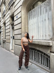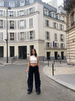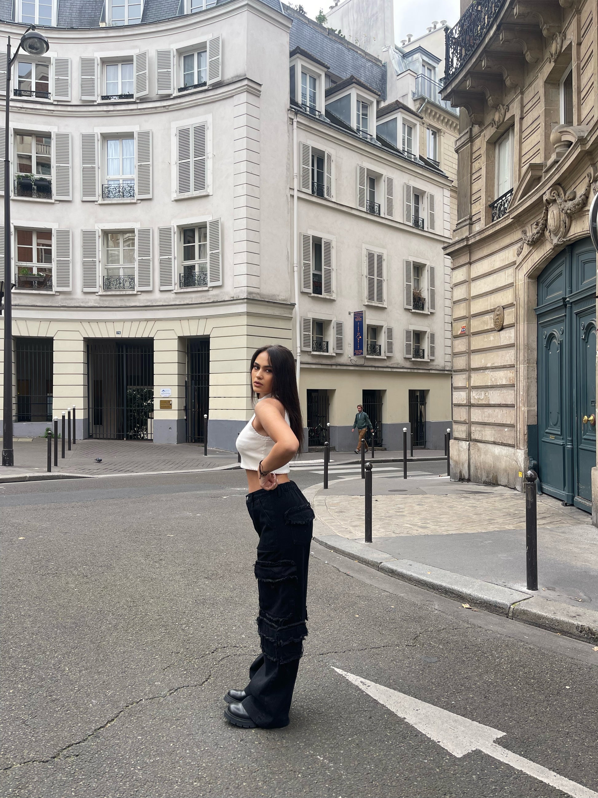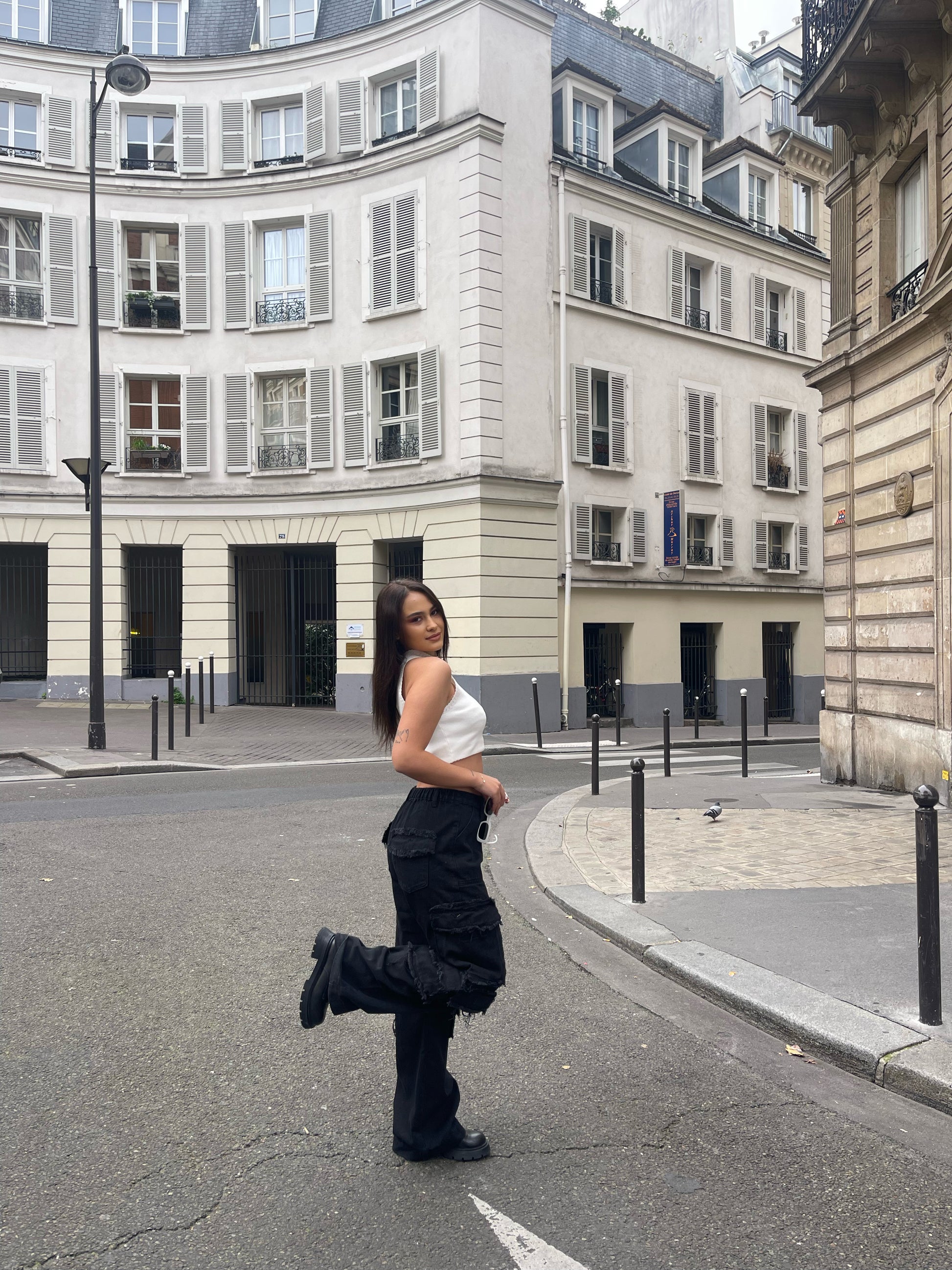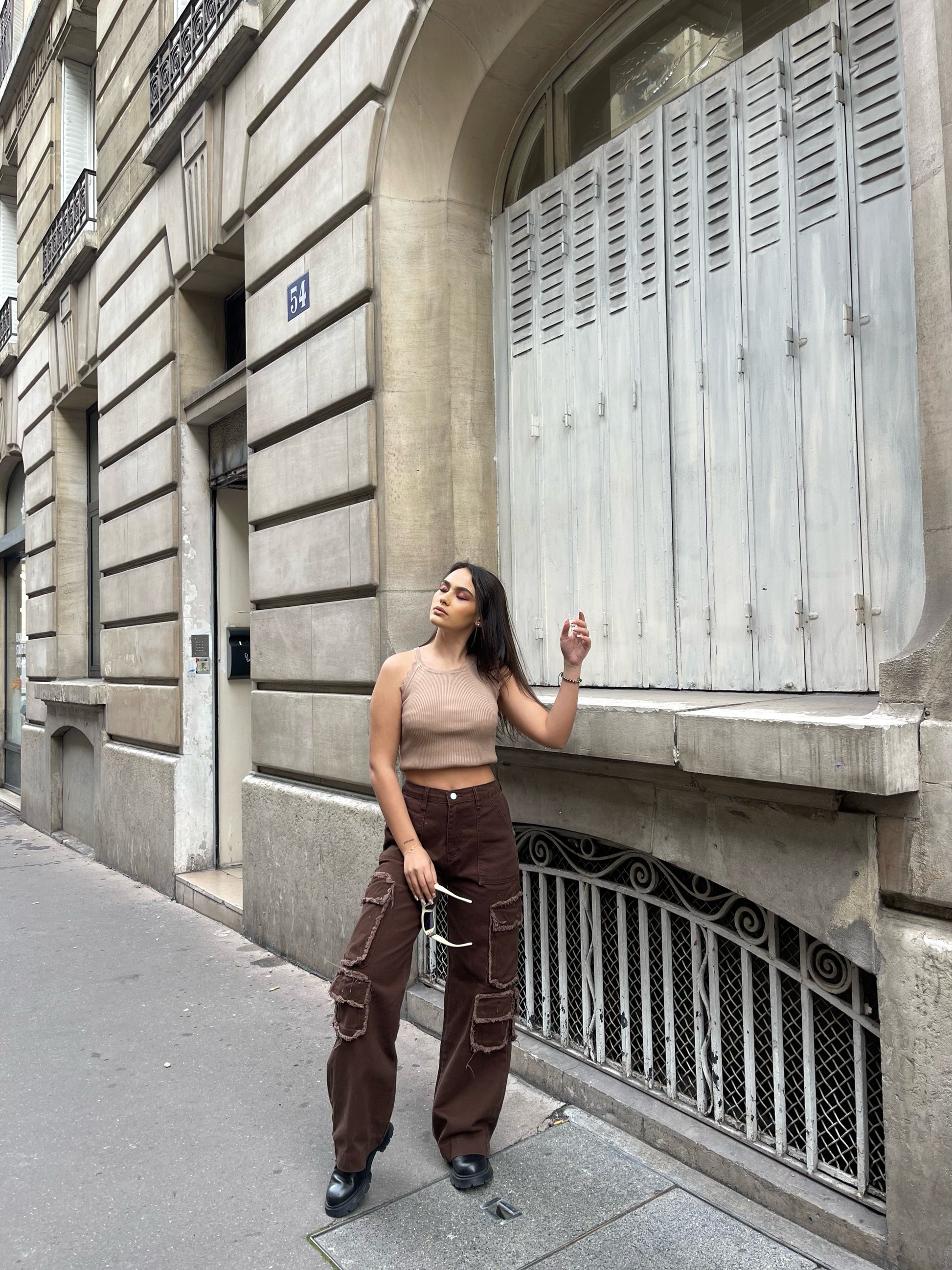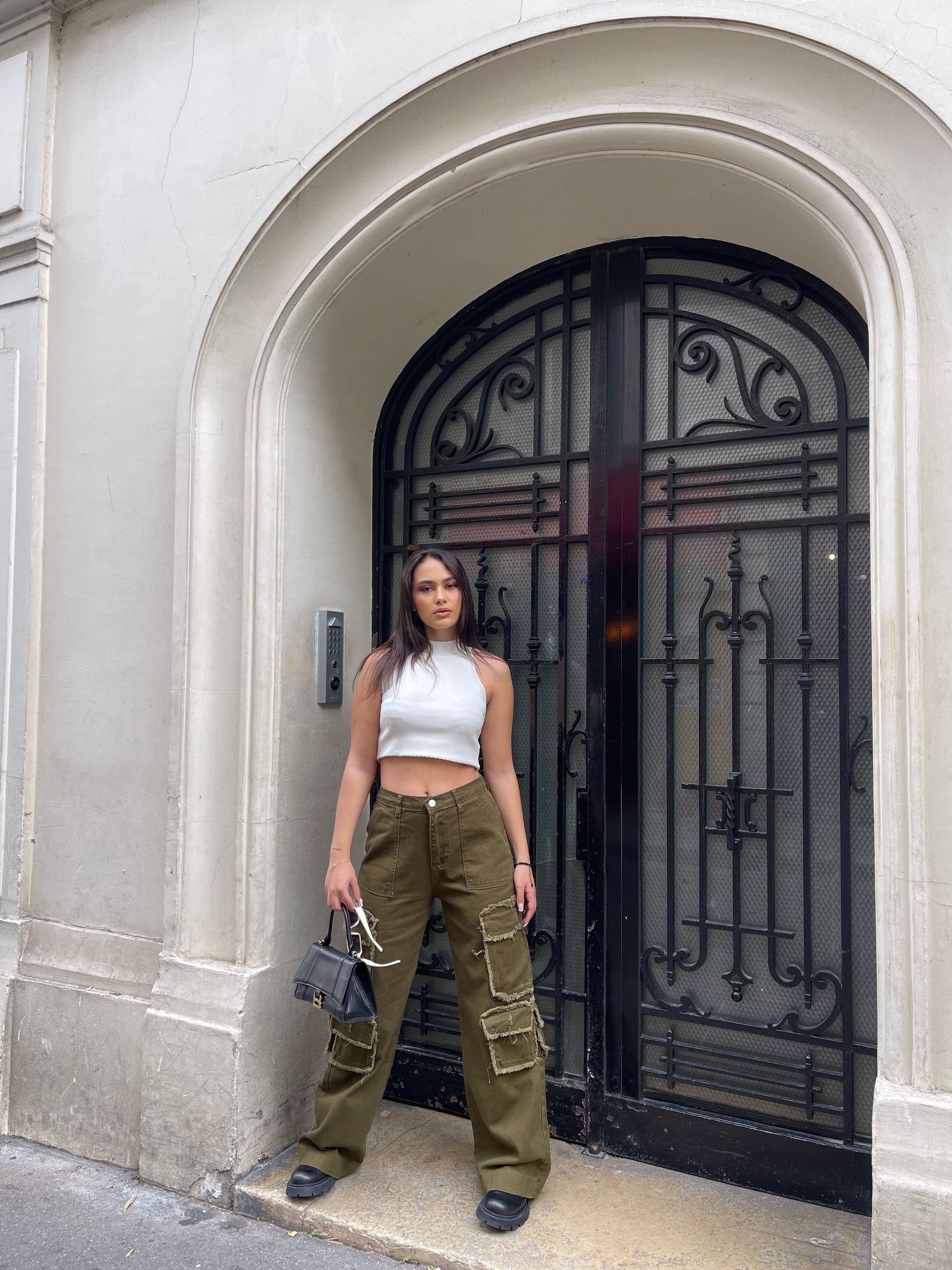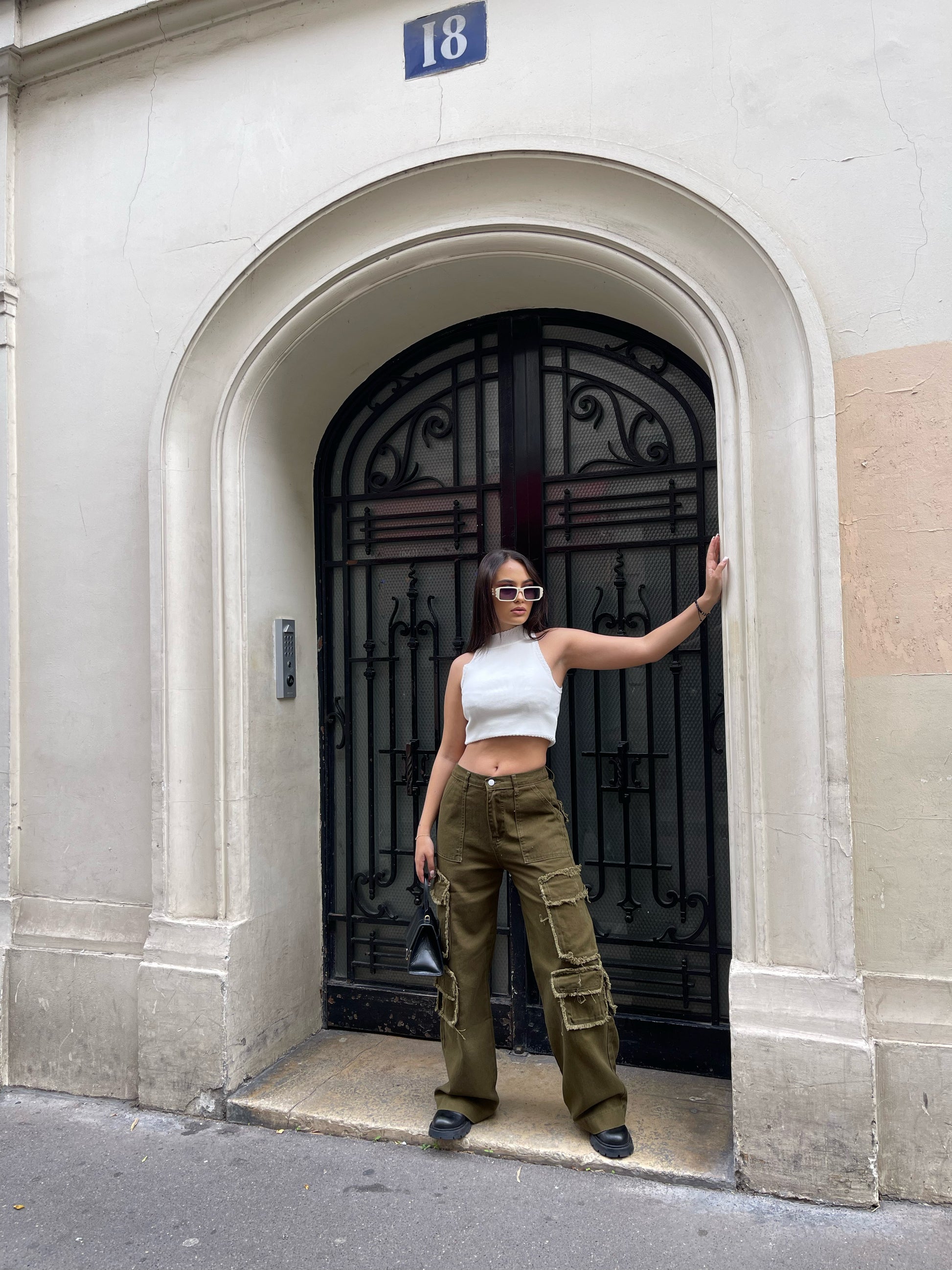 Xhinse cargo me qemer ne pjesen e belit. Stil i lirshem. Mberthimi behet me kops dhe zinxhir ne pjesen e perparme. Modeli vjene ne tri ngjyra jeshile, te zeza dhe kafe.