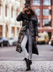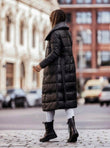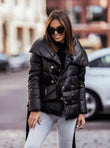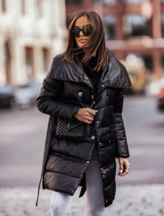 Xhup trecereksh me tri gjatesi me kipsa gold ne pjesen e perparme. Me jake me kapak me menge te gjata me rrip me llastik ne pjesen e belit. Me zinxhir te zi.