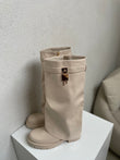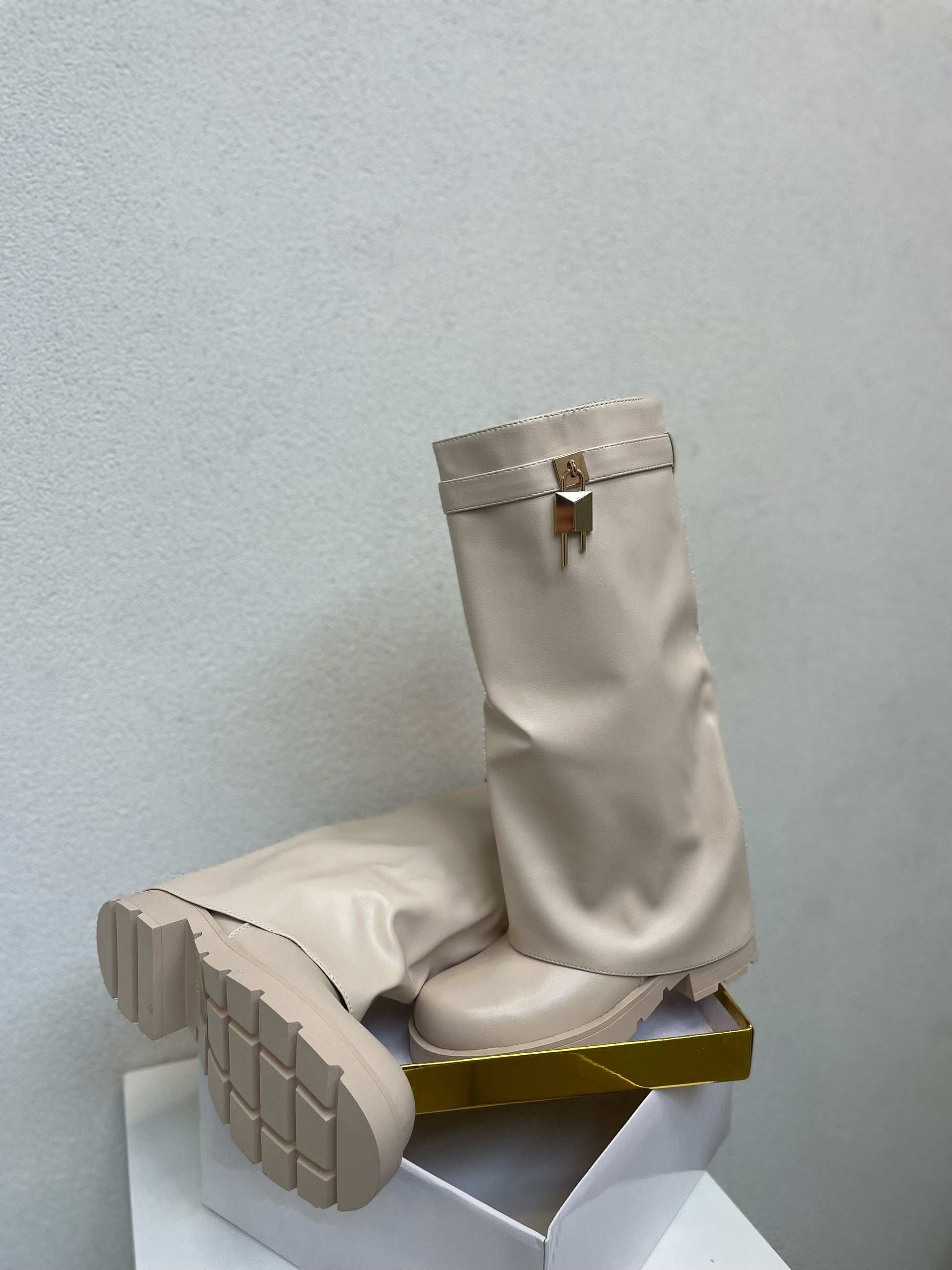 Cizme te gjata. Material lekure. Mbyllen me zinxhir ne ane.
