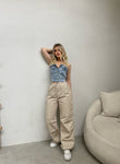 Crop bust xhins me kopsa para. Ka xhepa ne pjesen perpara dhe material te plote. Kombinohet lehtesisht me cdo veshje.