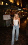Crop top bust me dantellë, elegant dhe femëror për kombinime plot stil.I lehtë dhe modern, ideal për mbrëmje apo dalje speciale.