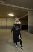 Crop tyl ne ngjyren e zeze, crop me supe jashte me krahet tyle te ciket shtojne me shume finesen dhe elegancen Perfekte për kombinime mbremje apo dalje speciale.