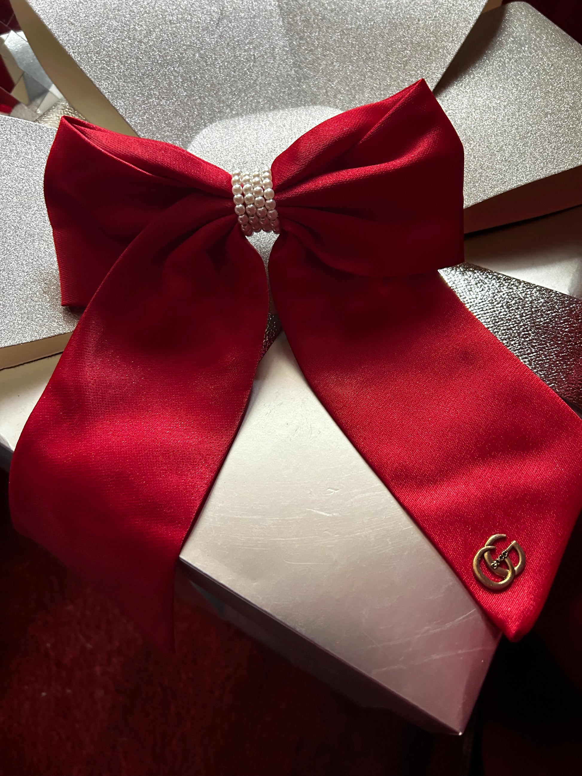 Fjongo ne ngjyren e kuqe me perla, shume e vecante. Ideale per festat.