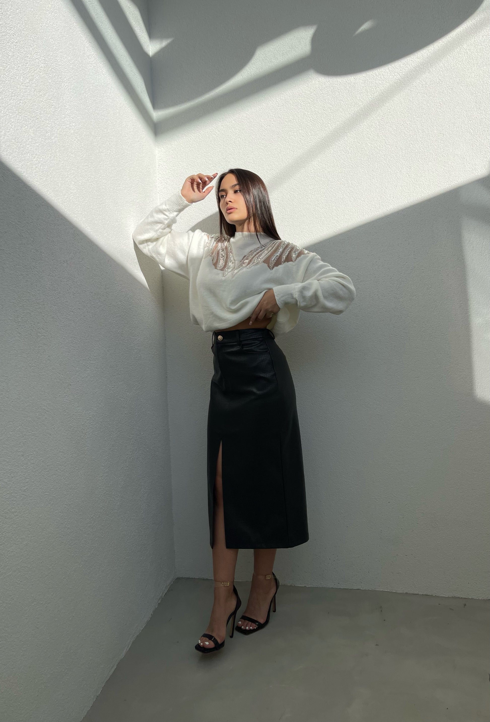 Fund lekure me printe gjarpri. Ne pjesen e belit fundi eshte me penca me xhepa te bollshem. Mberthimi behet me kops dhe zinxhir ne pjesen e perparme. Fundi ka nje te care ne mes ne pjesen e perparme.