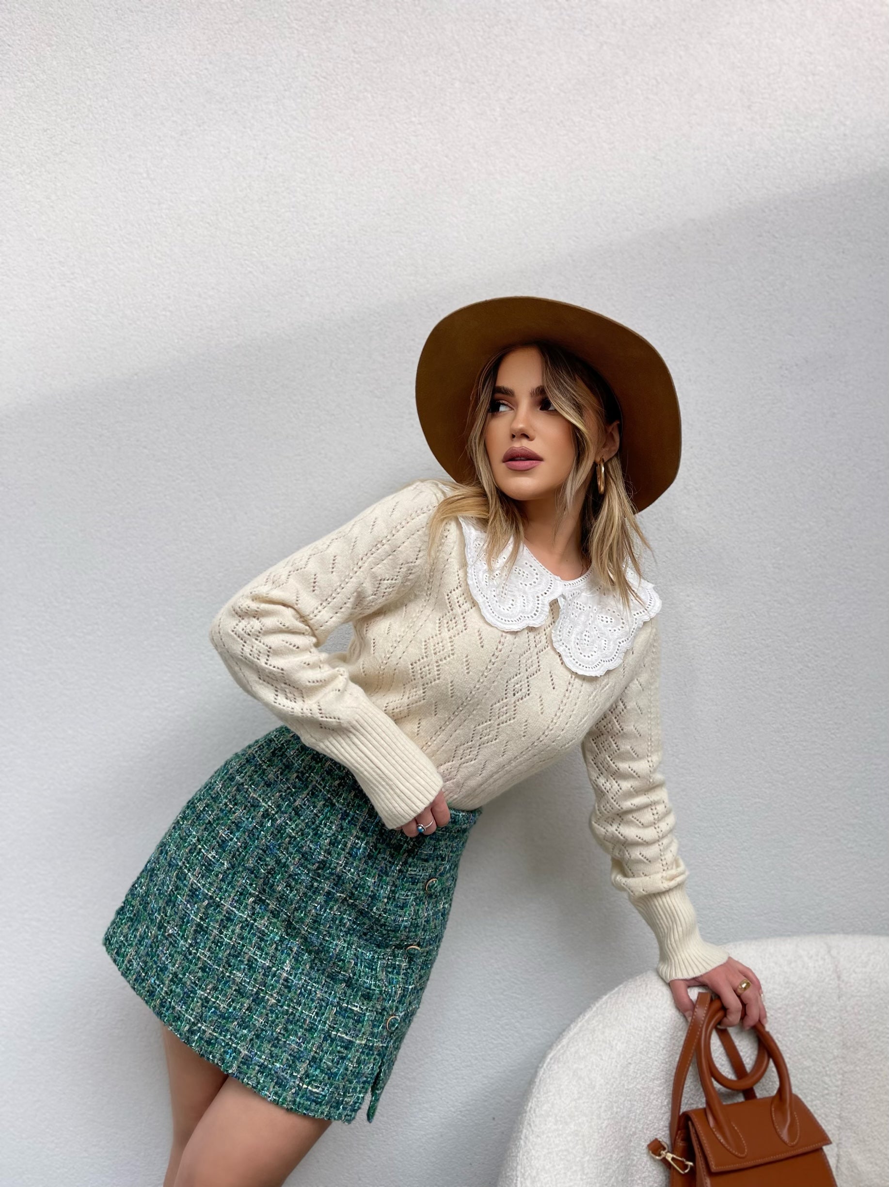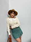 Fund me jeshil me kopsa ne pjesen e perparme. Eshte pak i car ne pjesen e fundit. Mberthimi behet me zinxhir ne pjesen e pasme.