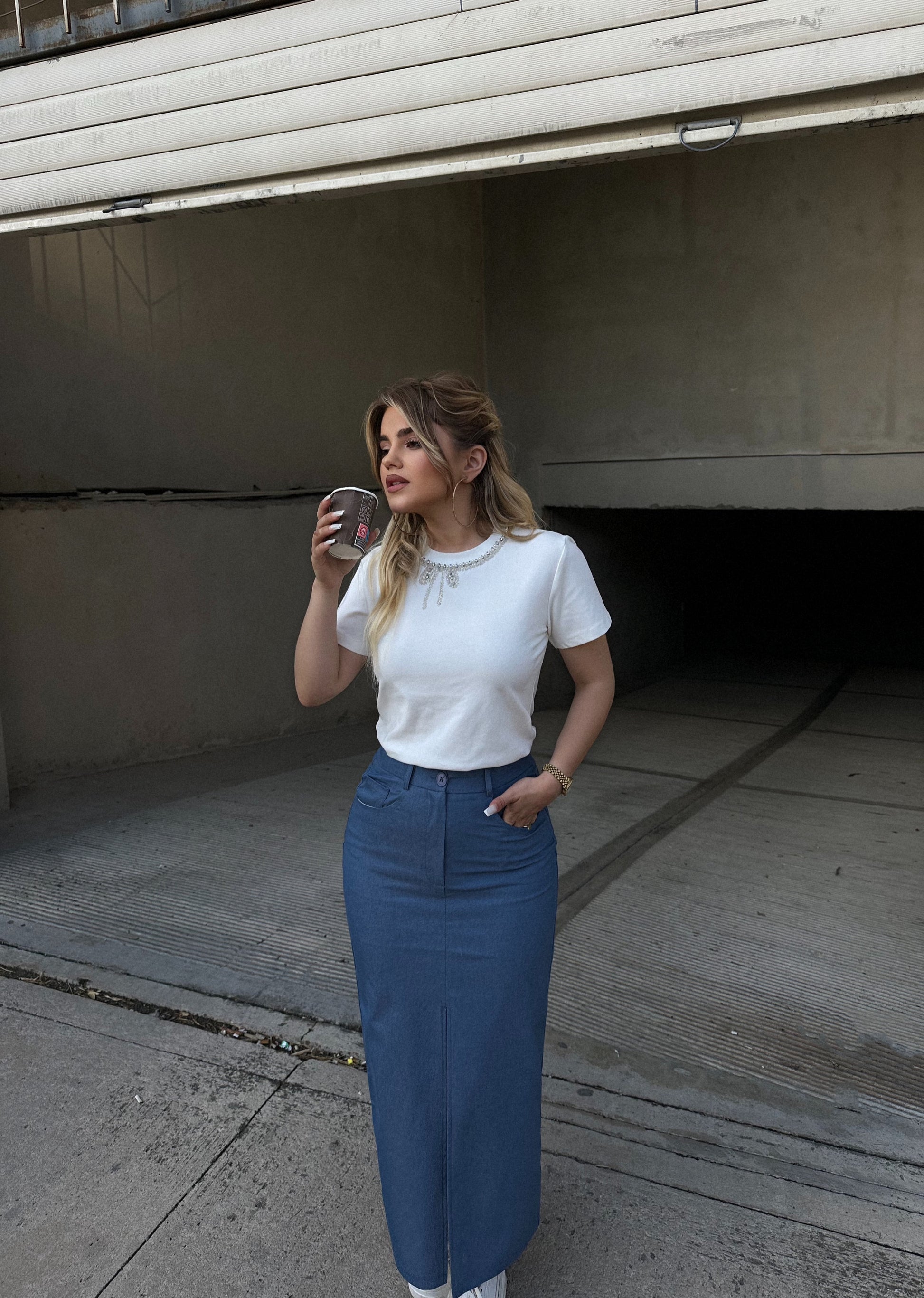 Fund trecereksh.Vjen me xhepa dhe nje te care ne pjesen para.Lehtesisht i kombinueshem me cdo veshje tjeter.
