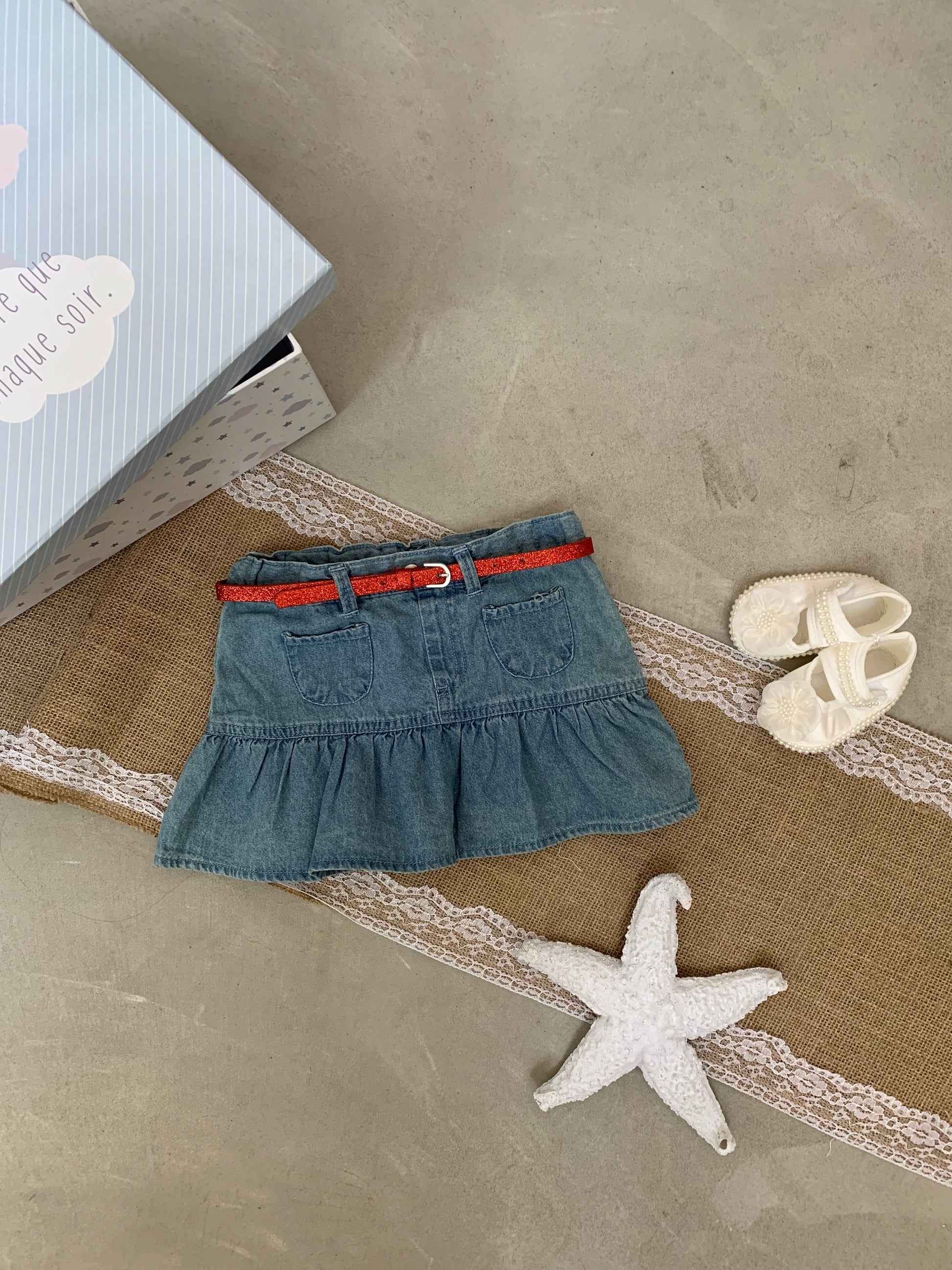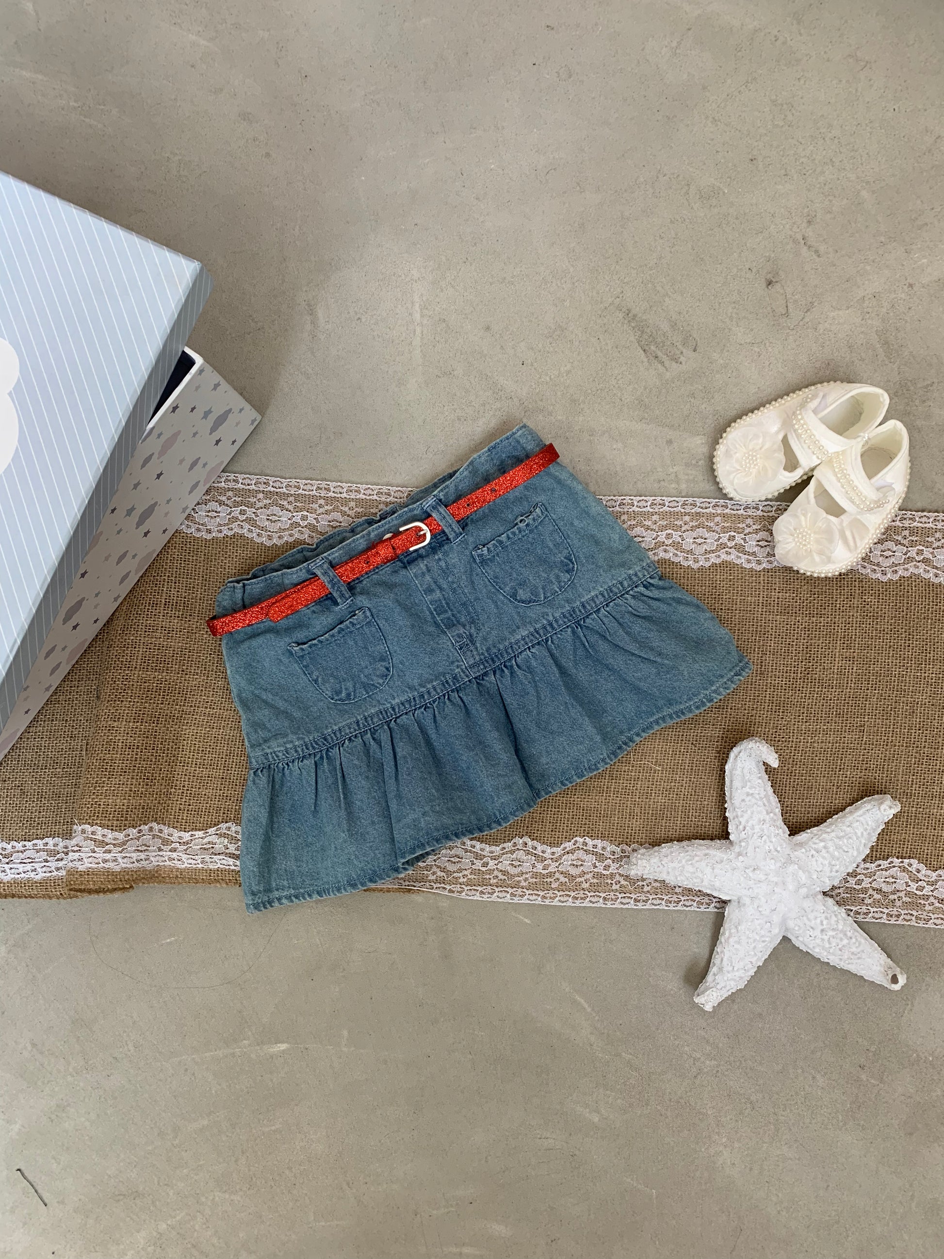 Fund xhins me pala dhe rrip te kuq ne bel. Ka material te plote dhe cilesi fantastike. Vjen me xhepa perpara dhe kombinohet lehtesisht me cdo veshje.