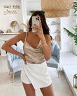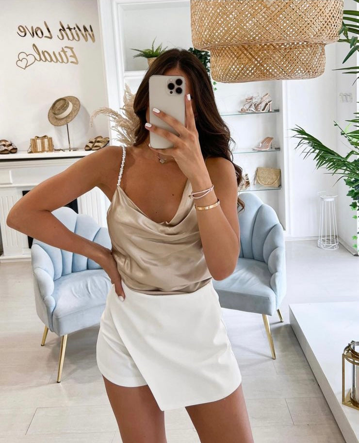 Fundpantallona te bardha. Jane me pale ne pjesen e perparme. Material i plote shume i mire. Mberthimi behet me zinxhir ne pjesen anesore.