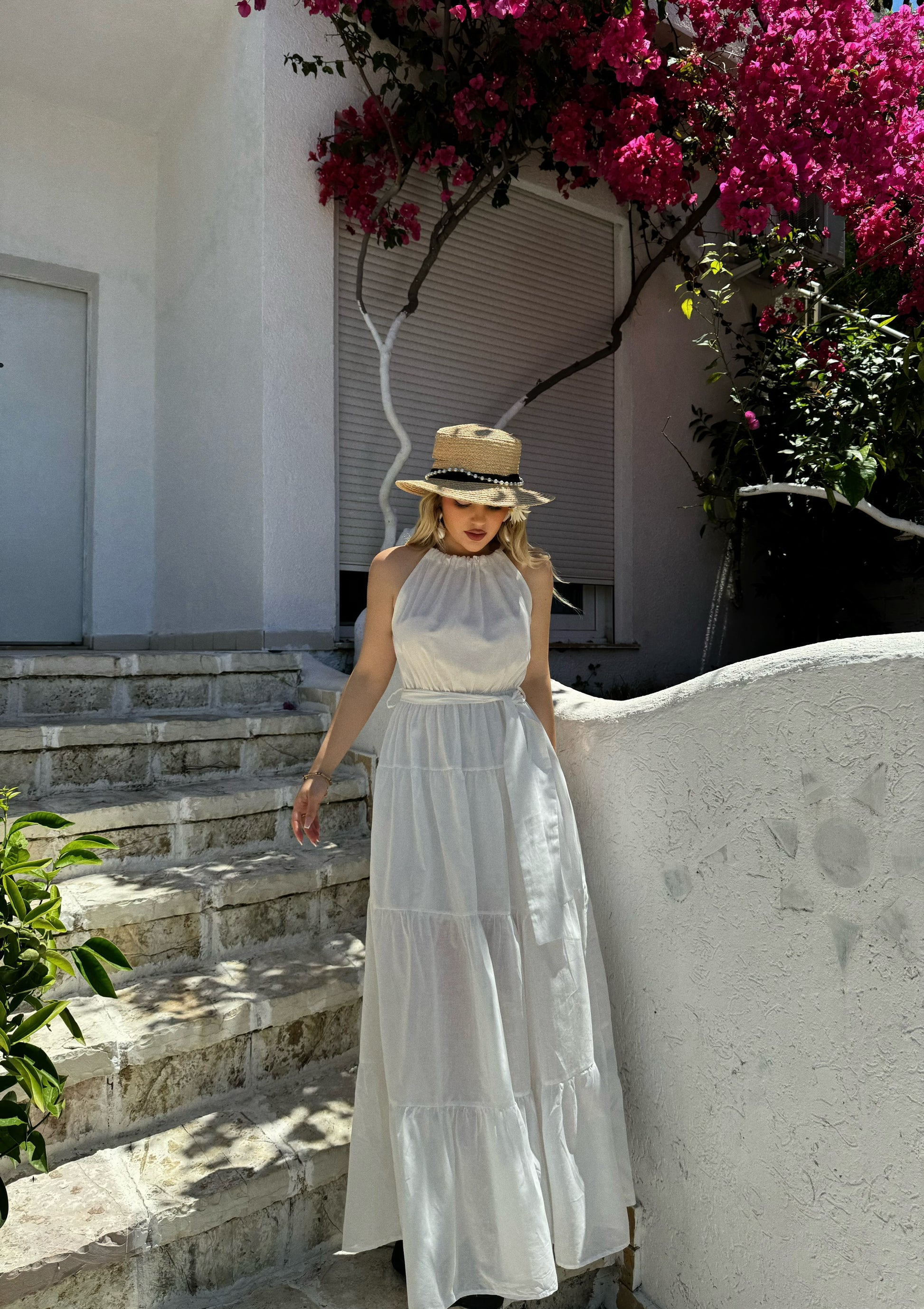Fustan i thjeshte ne ngjyren e bardhe. Ka material te plote dhe cilesi fantastike. Eshte komod dhe praktik.