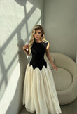 Fustan i gjate me pala. Eshte i lirshem ne pjesen e poshtme. Ka material te plote dhe cilesi fantastike. Teper stil dhe rri yll ne trup.