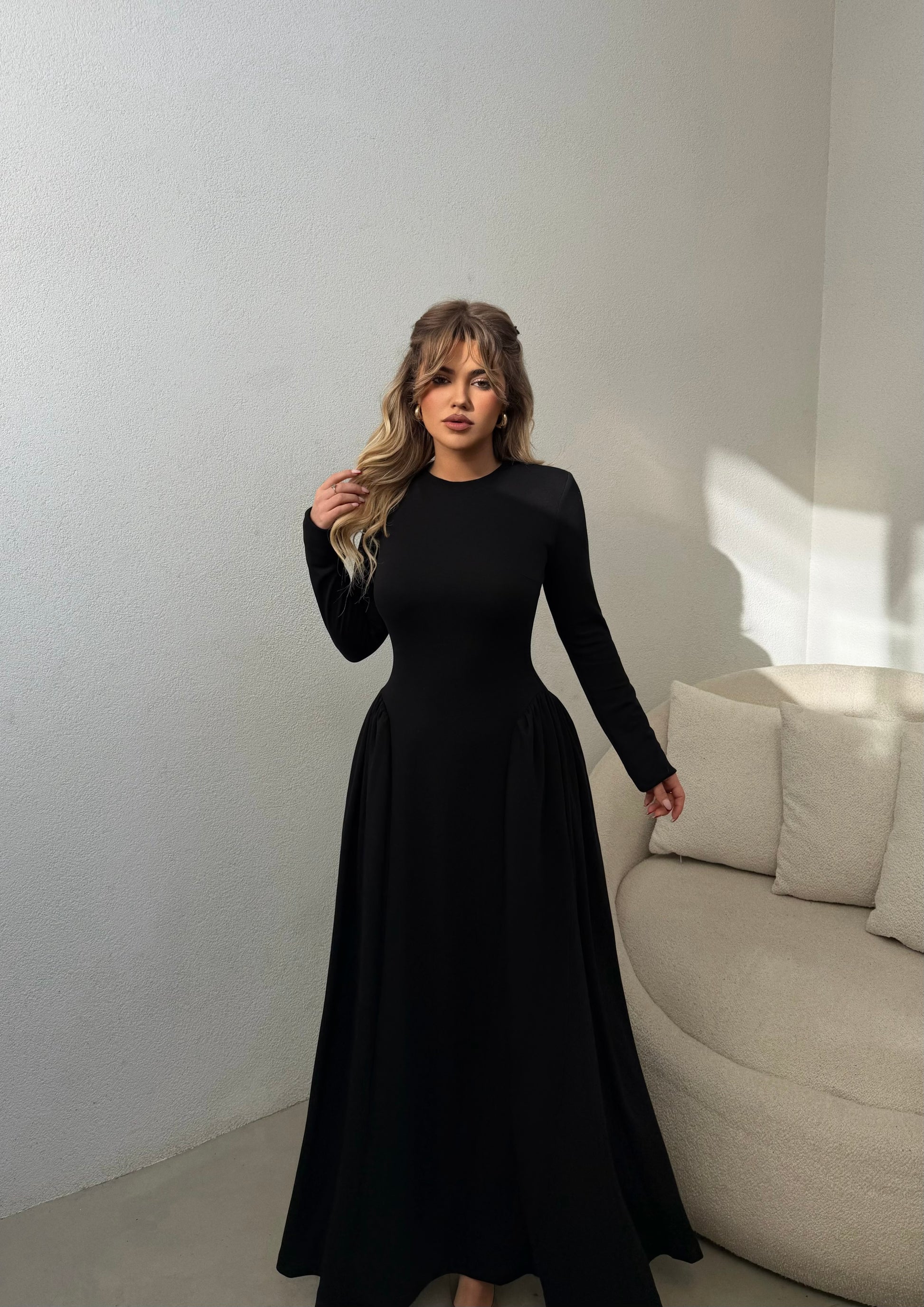 Fustan i gjatë i zi, pak i fryrë i thjeshtë, por i veçantë. Dhuron elegancë natyrale dhe duket bukur në çdo moment.