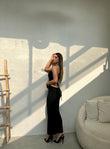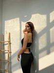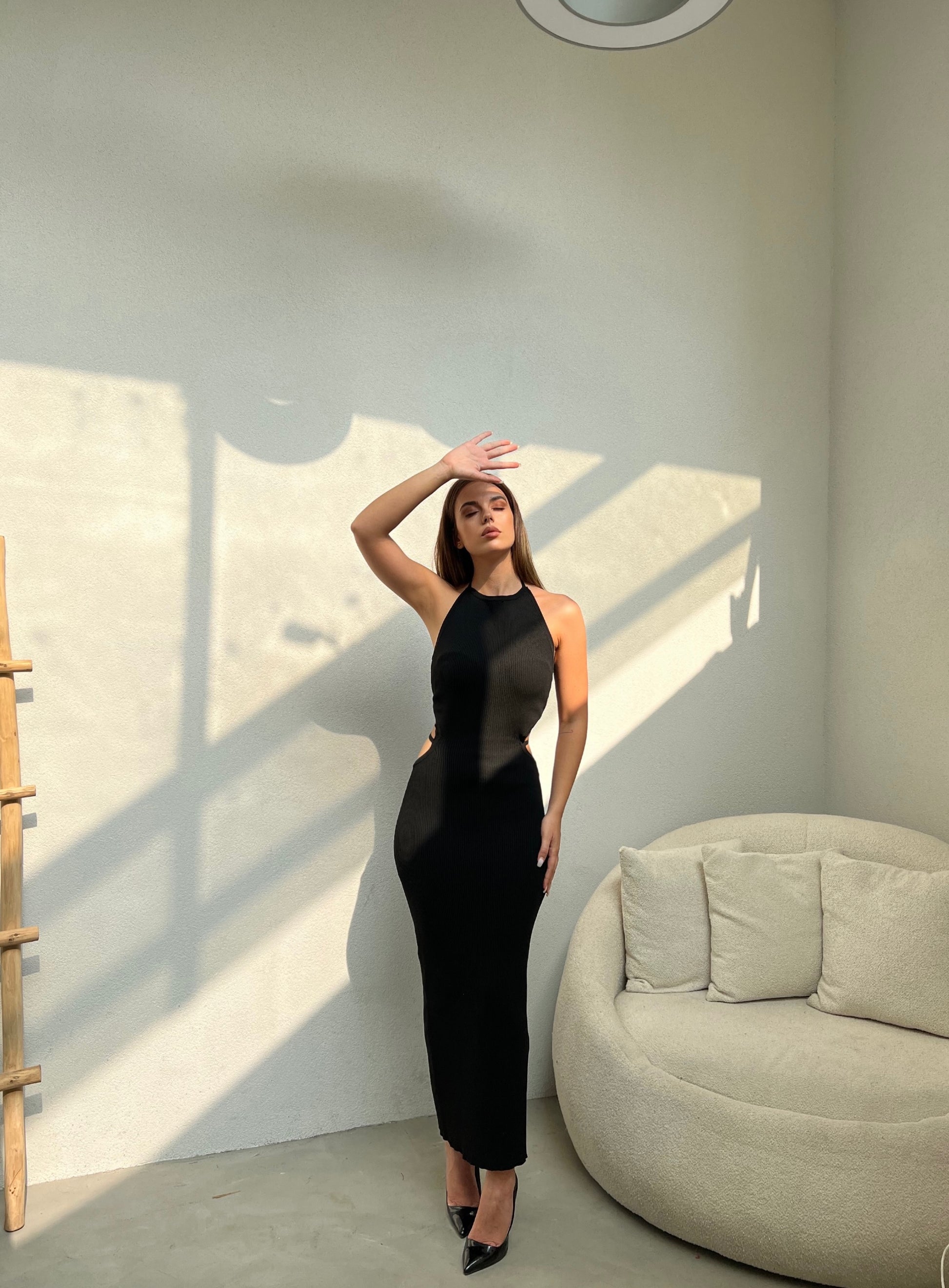 Fustan i gjate i zi i hapur mbrapa. Ka material te plote dhe cilesi fantastike. Super stil dhe detaje perfekte.