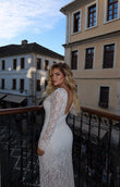 Fustan i gjate me astar poshte dhe tyl siper. Me menge te gjata dhe me shpine te hapur.