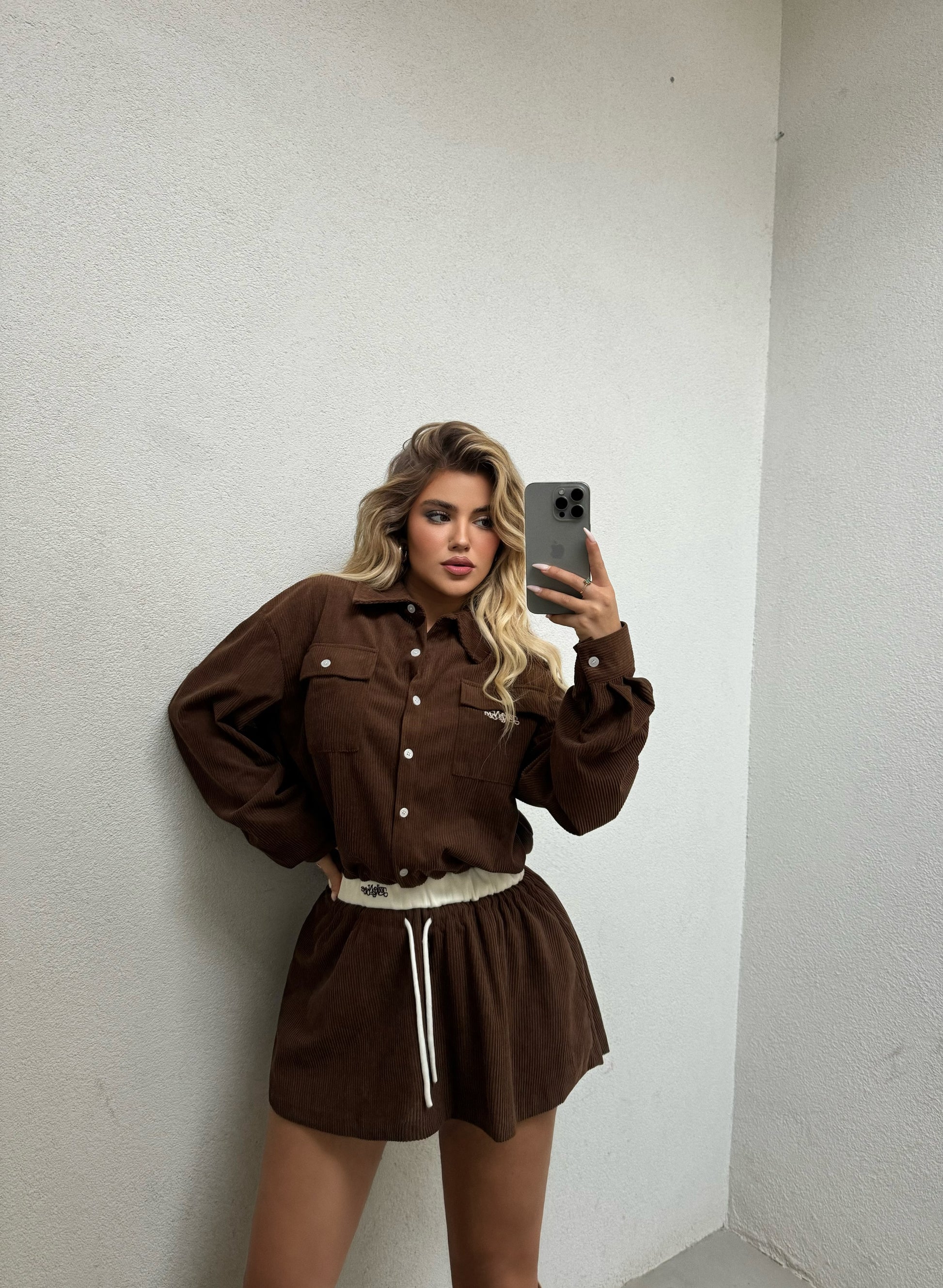 Fustan i shkurter ne ngjyren kafe. Vjen me llastik dhe lidhese ne bel. Material i plote, shume komod ne trup.