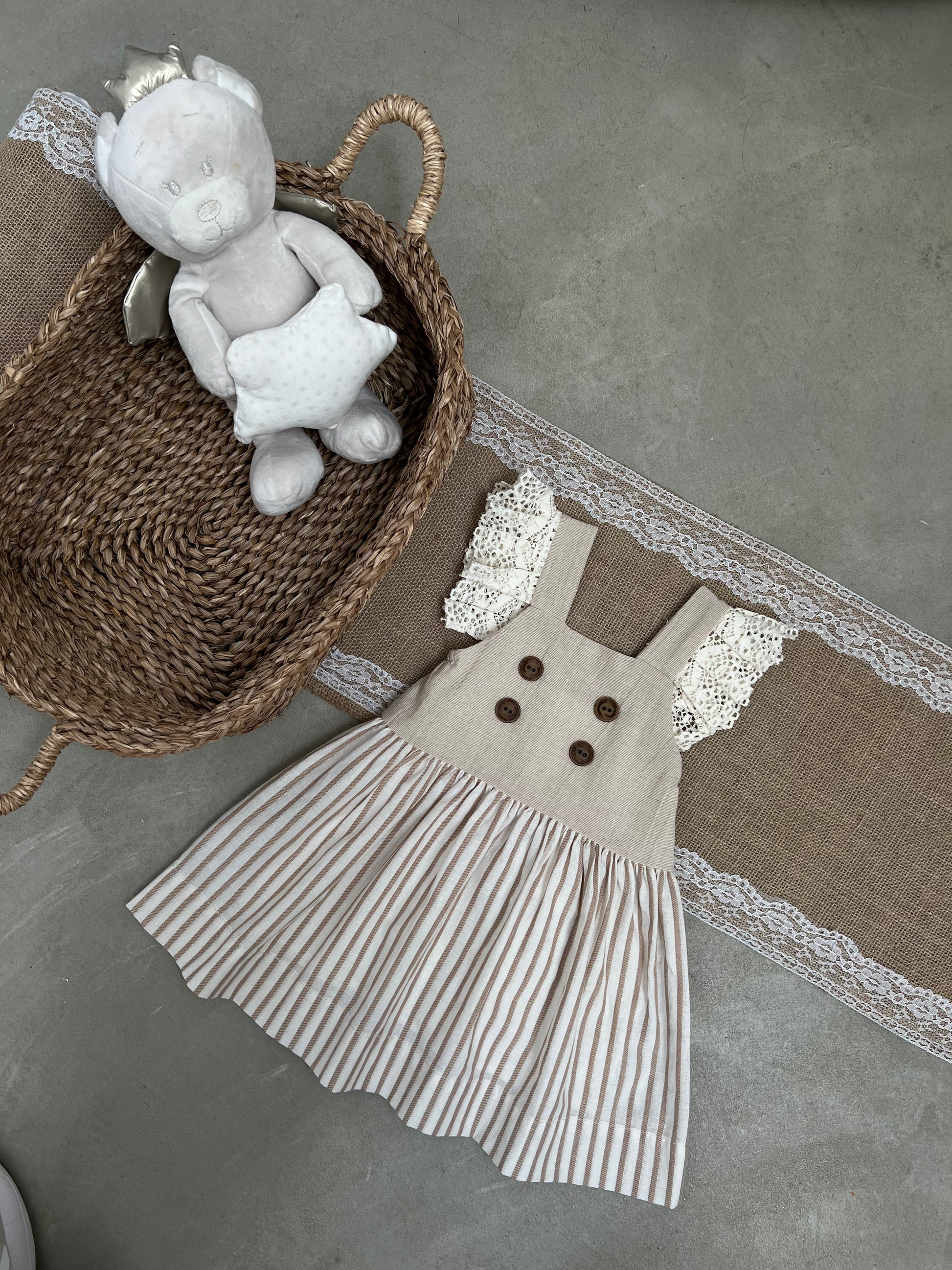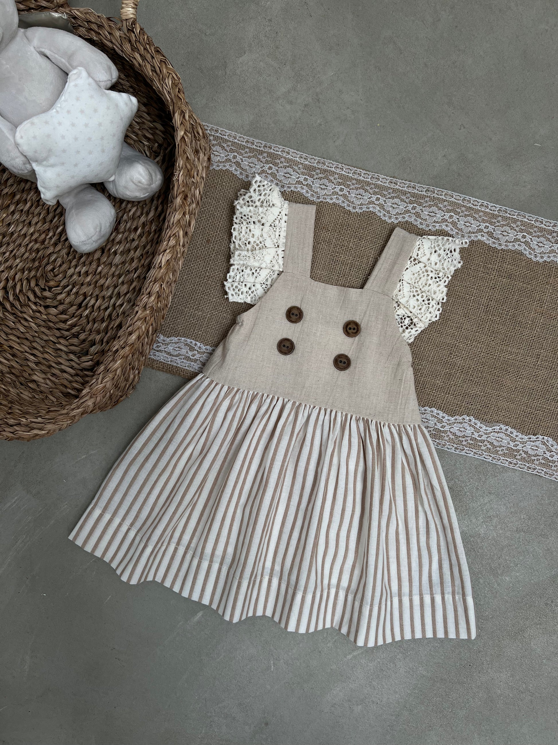 Fustan me krahe te shkurter me kopsa para. Vjen me viza poshte. Ka material te plote dhe cilesi fantastike. Super komode dhe teper stil.