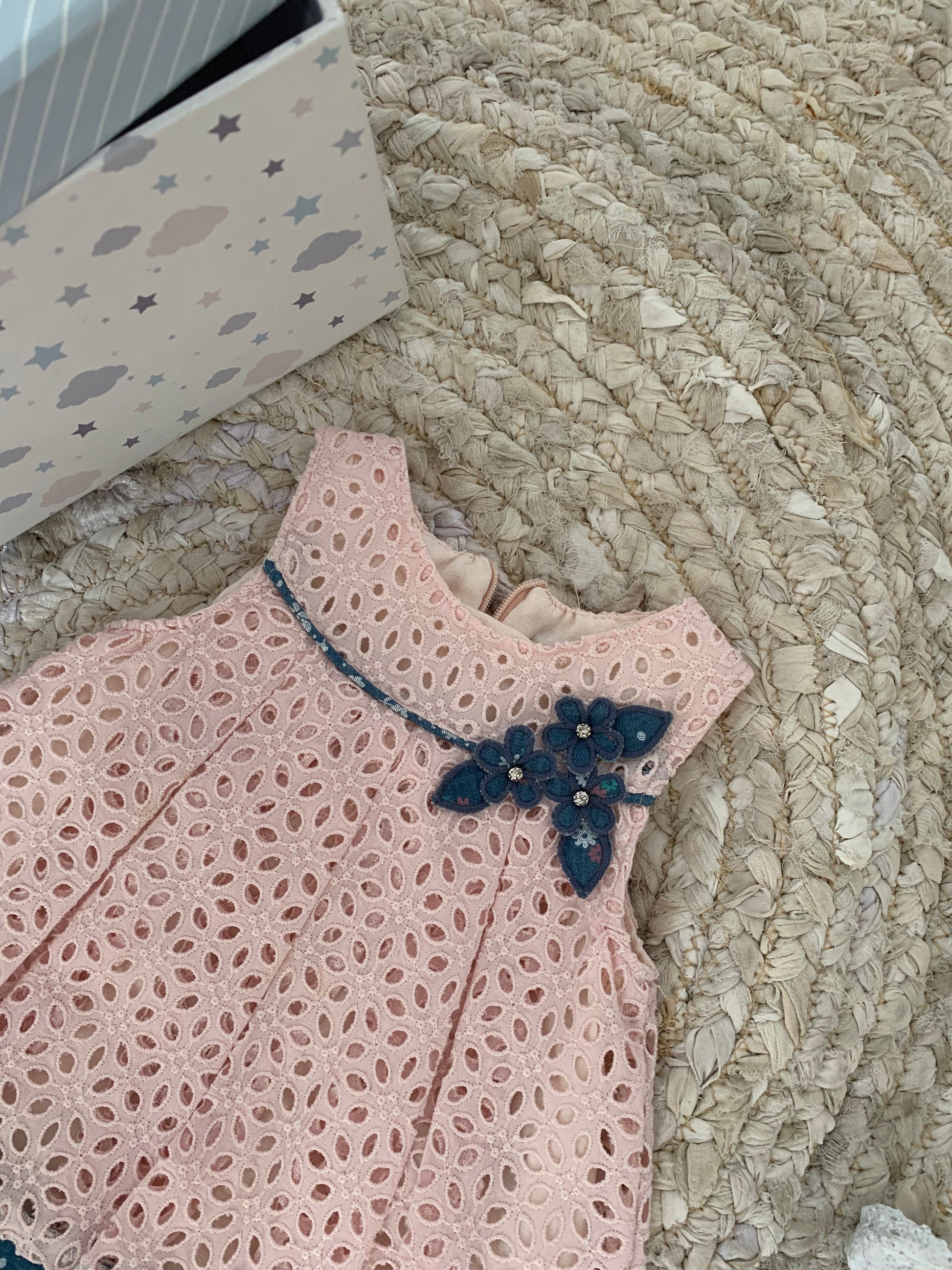 Fustan i shkurter me lule blu ne pjesen fundore. Vjen pa menge dhe ka cilesi fantastike. Super material dhe teper komod.