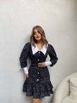 Fustan i shkurter me pika. Ka jake te bardhe ne forme V-je dhe kopsa ne pjesen perpara. Material te plote dhe cilesi fantastike.