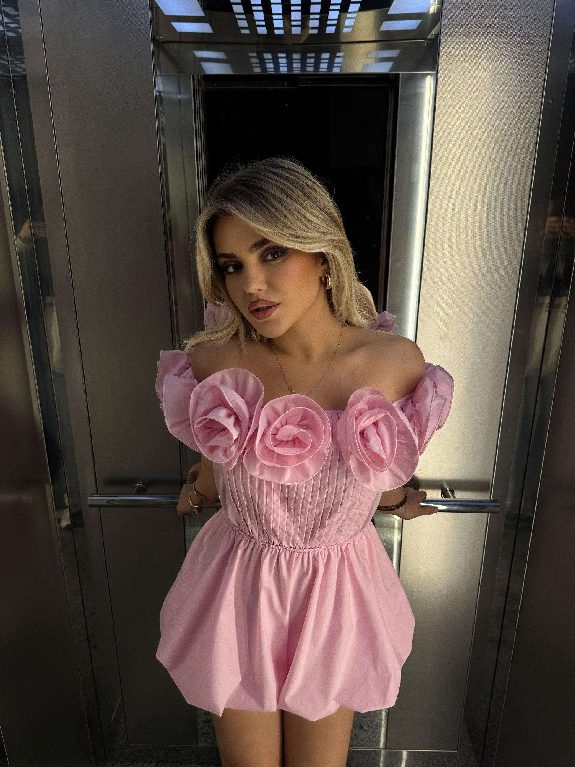 Fustan-jumpsuit me supe jashte. Vjen me detaje me trendafila dhe eshte teper cute. Cilesi fantastike.