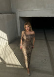 Fustan i gjate leopard me nje sup jashete. Vjen tyl siper dhe me astar poshte.