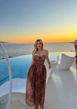 Fustan i gjate me motive leopard. Eshte me rripa dhe detaje me gure para. Ka material te plote dhe eshte teper stil.