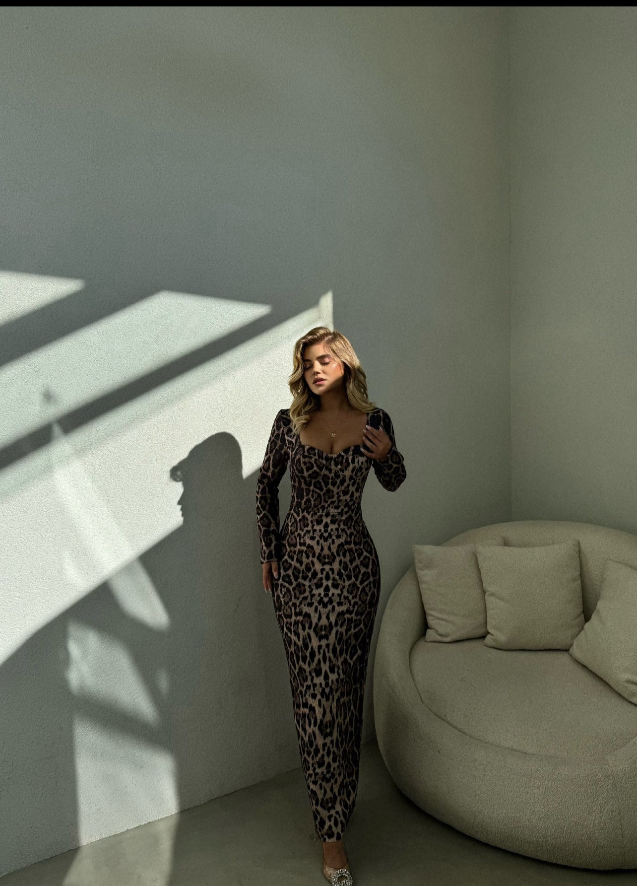 Fustan i gjate me dizenjo leopardi. Ka material te plote dhe vjen me krahe te gjate. Ka kupa tek pjesa e gjoksit. Cilesi fantastike dhe super stil.