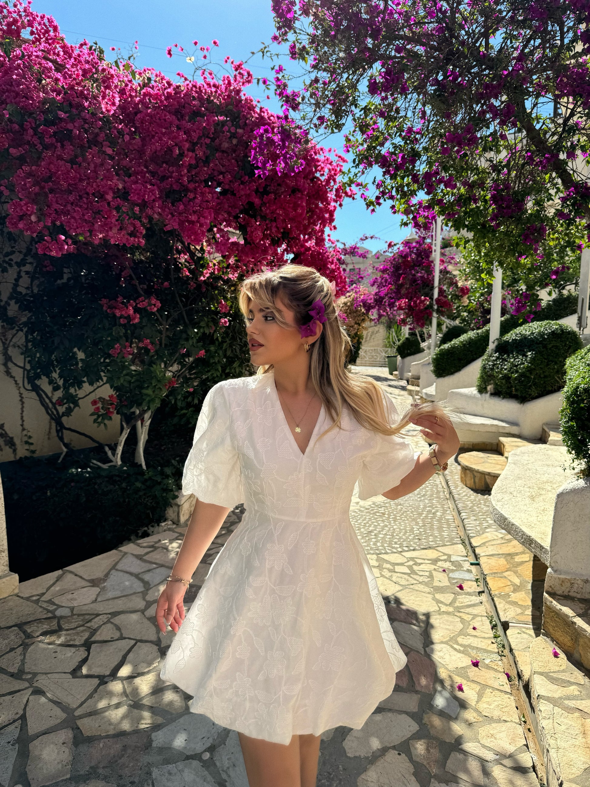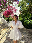 Fustan lino i shkurter me jake V. Eshte i shkurter dhe ka zinxhir anash. Material i plote dhe cilesi fantastike.