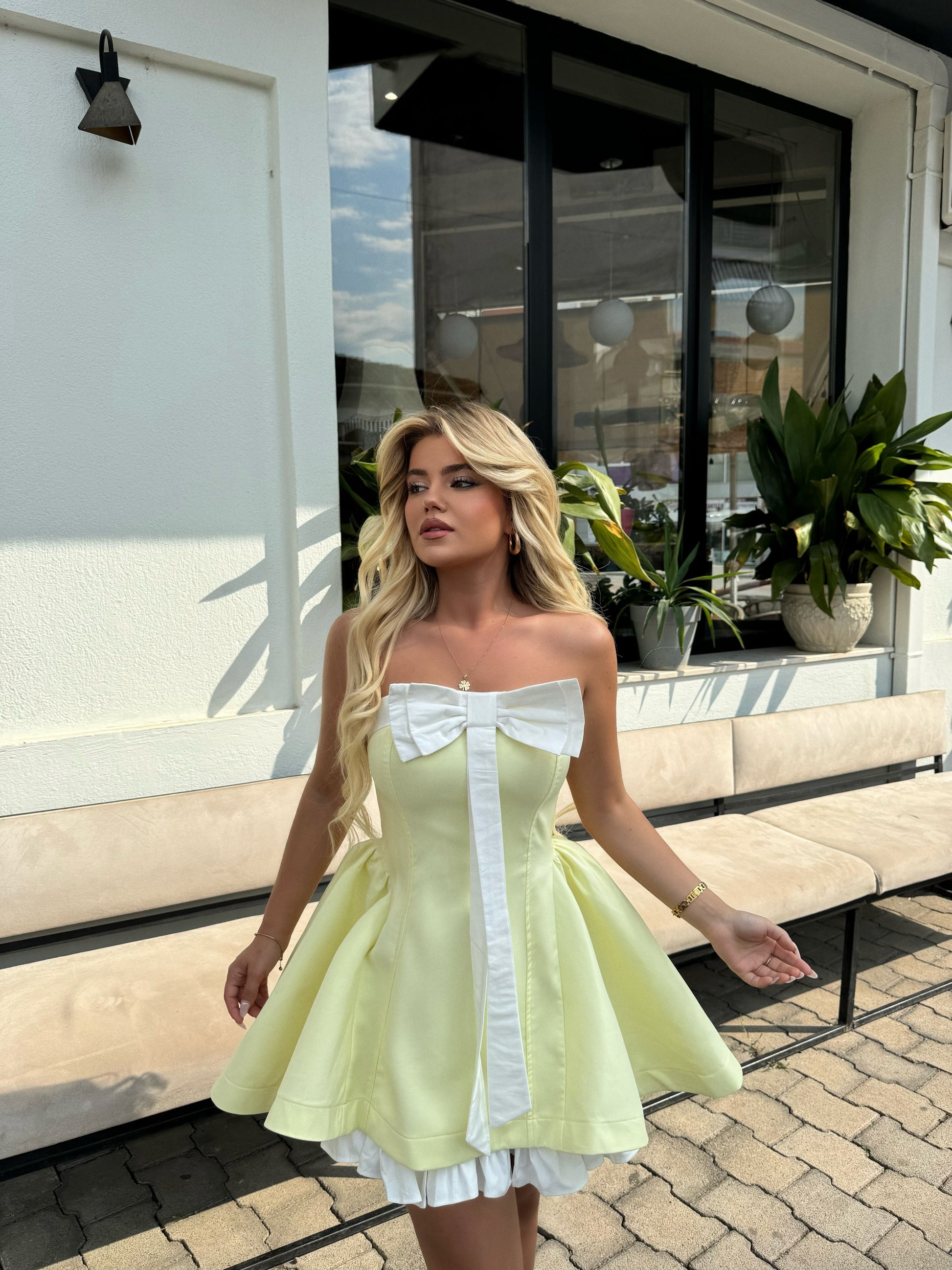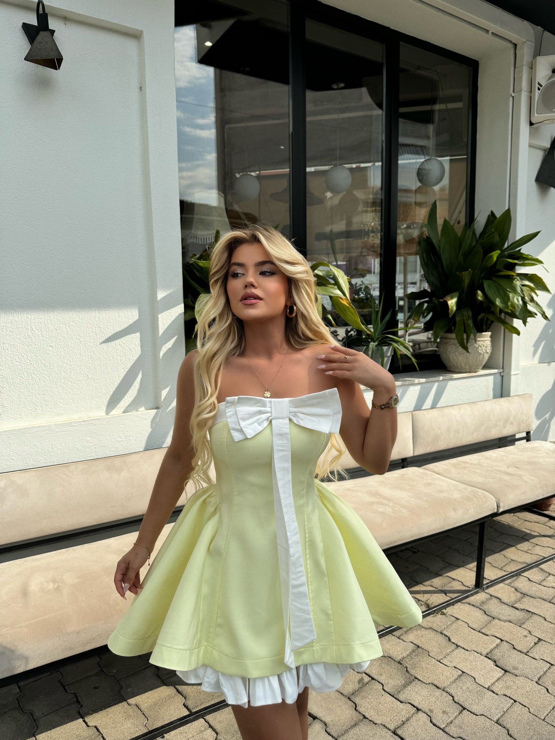 Fustan i shkurter me fjongo ne pjesen para. Eshte bust dhe rri super ne trup. Teper cool dhe stil. Ka material te plote dhe cilesi fantastike.
