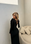 Fustan me fjongo tek supet. Vjen i hapur pas. I care ne ane. Material i plote qe pershtatet perfekt ne trup. Mbyllet ne ane me zinxhir.