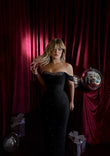 Fustan i gjatë në ngjyrë të zezë, i dekoruar me gurë shkëlqyes që i japin klas dhe luks. Zgjedhja perfekte për mbrëmje gala dhe evente speciale.