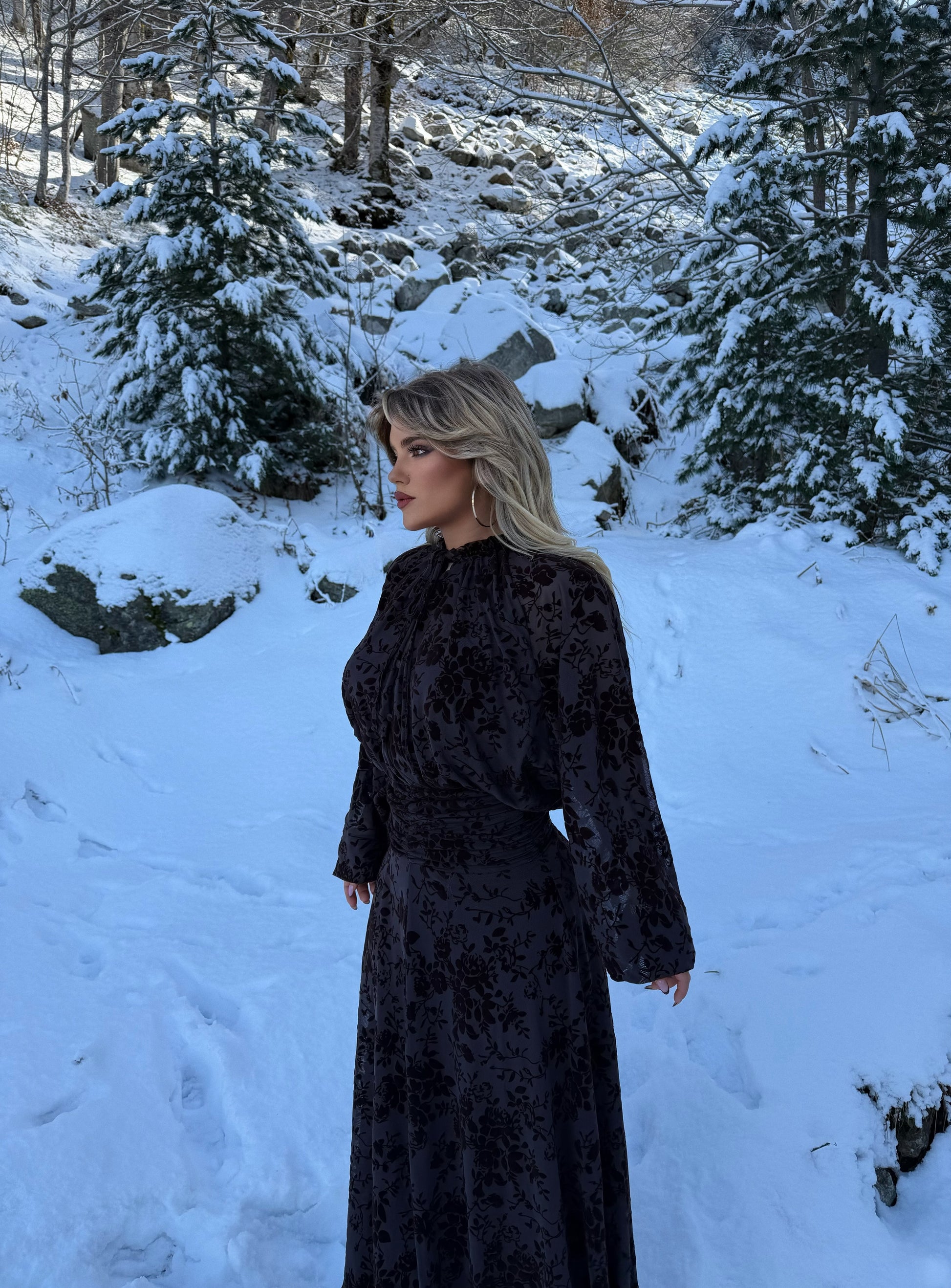 Fustan i gjatë kafe me lule.Fustan i lehtë dhe elegant,ne ngjyrë kafe dhe motive lulesh që i japin një pamje të bukur dhe femërore. Perfekt për përditshmëri ose evente të thjeshta.