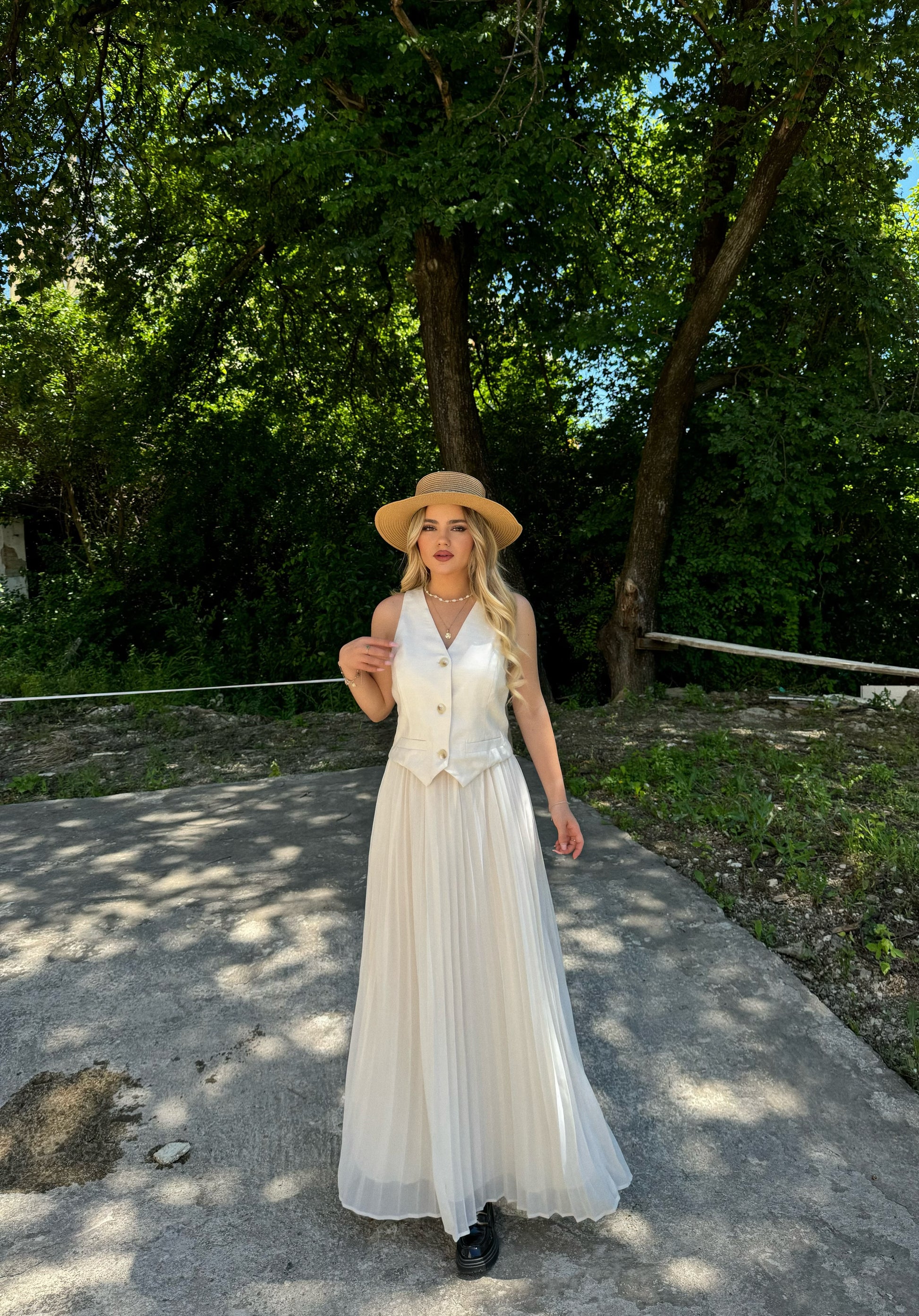 Fustan i gjate me pala. Eshte si jelek ne pjesen e siperme. Stil dhe i vecante. Ka material te plote dhe cilesi fantastike.
