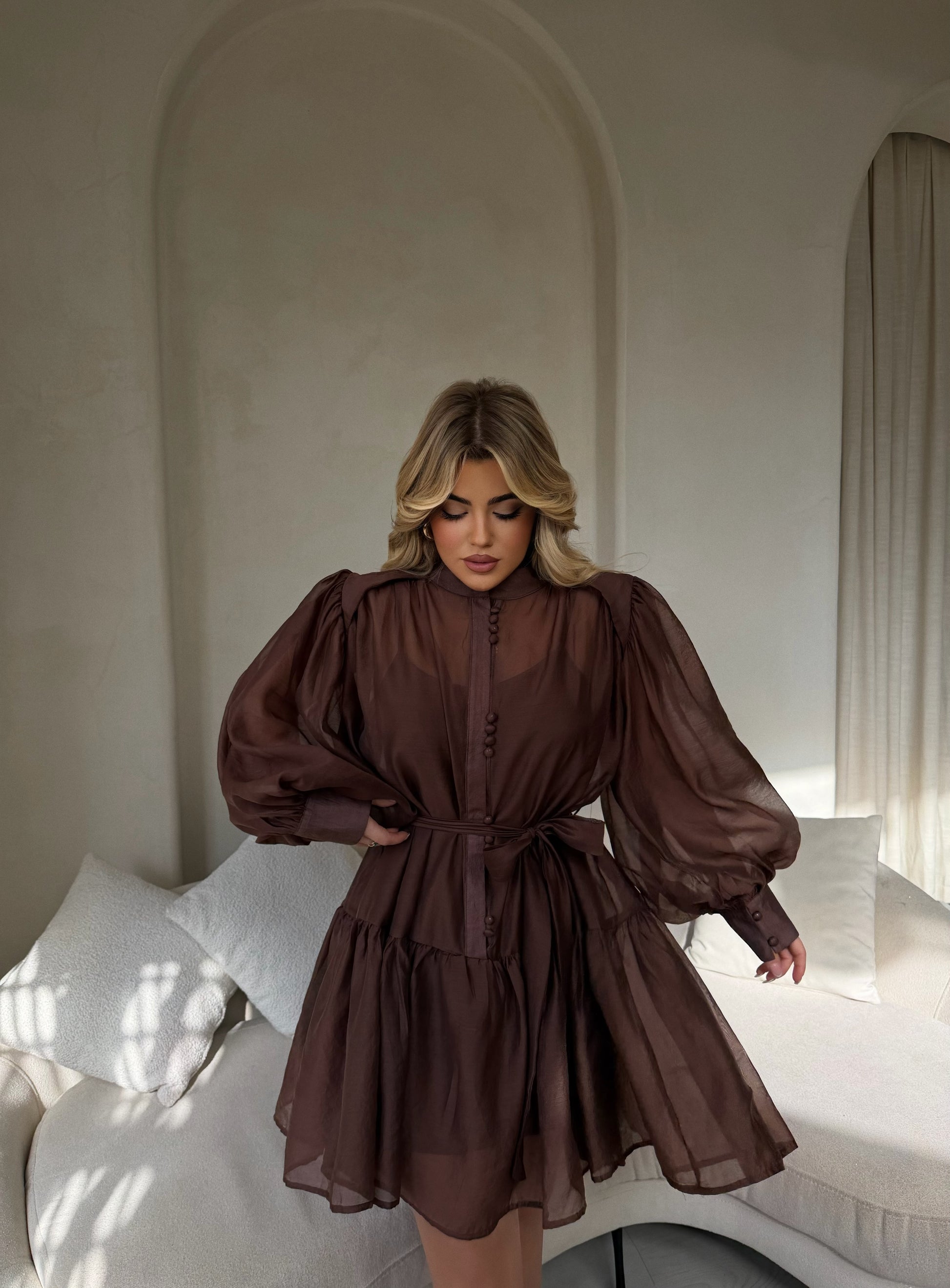 Fustan me rrip ne bel. Fustani eshte me kopsa perpara dhe rrip ne bel. Ka gjatesi normale, materiali eshte komode. Ideal per tu dukur e vecante dhe stil.