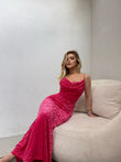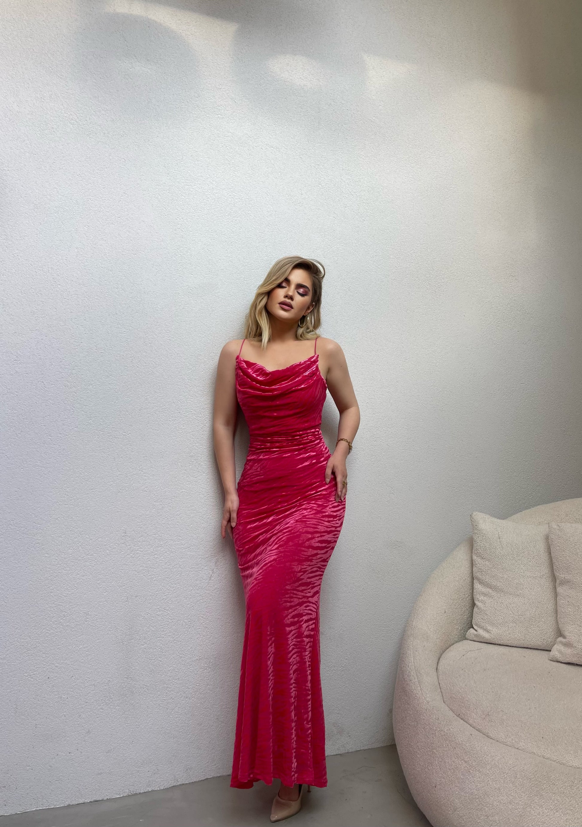 Fustan roze i gjate. Me rripa te holle qe e bejne te duket teper elegant. I derdhur, material fantastik. Ka elasticitet dhe pershtatet pas trupit.