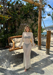 Fustan i gjate rrjete per ne plazh. Eshte pas trupit dhe i lirshem ne pjesen e poshtme. Ka cilesi fantastike dhe rri yll ne trup.
