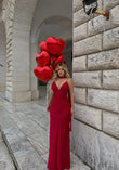 Fustan saten me dekolte te hapur. Material i plote. Rri yll ne trup.
