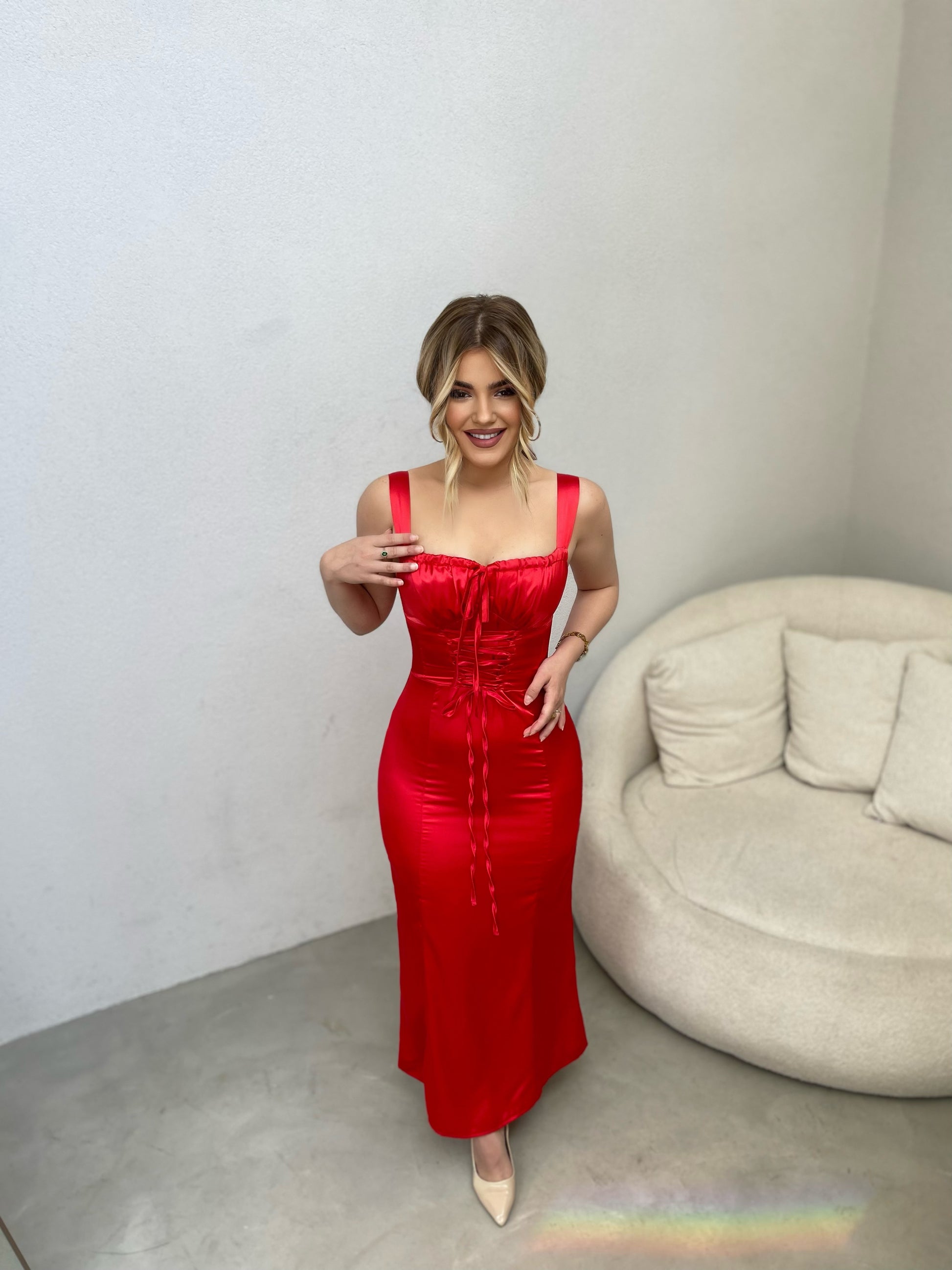 Fustan saten me rripa dhe lidhje para. Ka material te plote dhe cilesi fantastike. Super stil dhe teper komod.