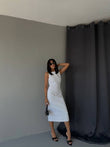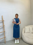 Fustan xhins trecereksh mbas trupit. Vjen me menge zhapone. Ka material te plote dhe cilesi fantastike.