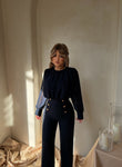 Jumpsuit elegant, me pantallona të drejta dhe kopsa gold dekorative tek xhepat që i japin një prekje fine. I rehatshëm dhe shumë stil, perfekt për ditë apo mbrëmje.