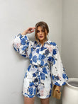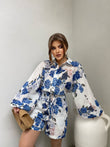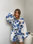 Jumpsuit blu me lule. Material fantastik linoje. Mberthimi behet me ane kopsave dhe lidheses tek pjesa e belit. Ka llastik tek menget. Jaka eshte ne forme V-je. Kombinohet ne menyre fantastike.