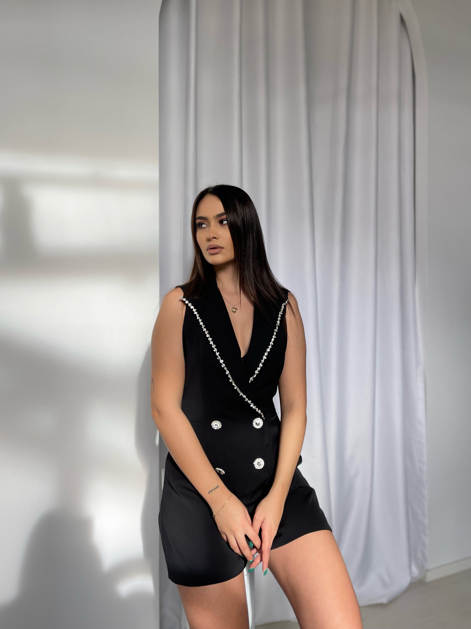 Jumpsuit klasik me jake me kapak dhe gure. Kane gjatesi normale. Ne pjesen e parme ka kopsa me gure. Eshte me krah zhapone. Vjen ne tre ngjyra: i zi, bojeqielli dhe i bardhe.