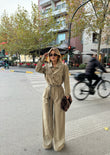 Jumpsuit praktik dhe stilor prej materiali xhins, me kopsa në pjesën e përparme dhe rrip në bel për një përshtatje të bukur. I lehtë për t’u kombinuar në çdo stil ditor.