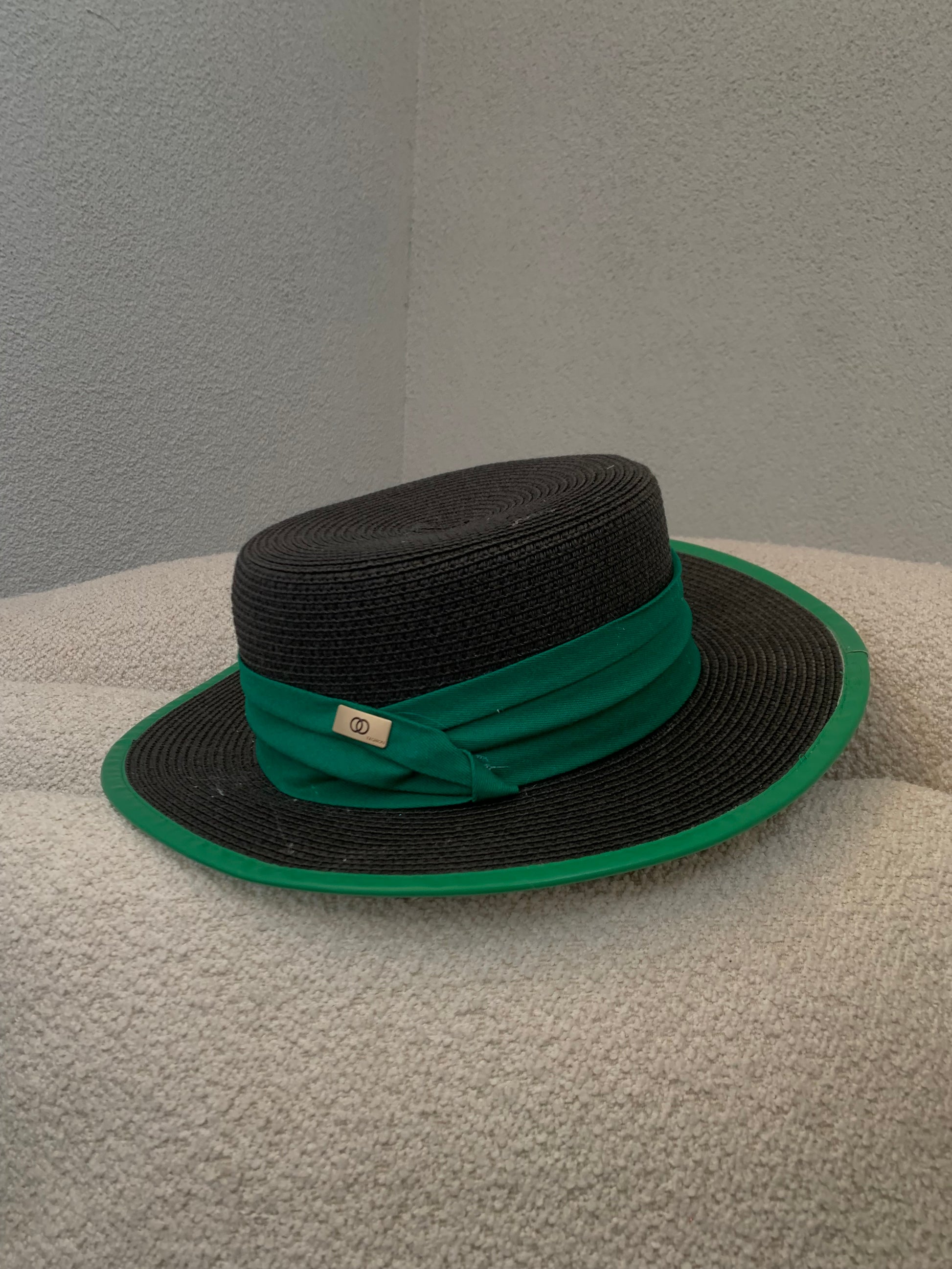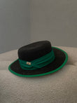 Kapele kashte e zeze me shirit jeshil. Ka material te plote dhe eshte teper e kombinueshme.