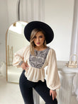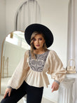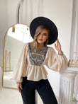 Kemish me pala me jake rrethore me menge te gjata . Me dizenjo abstrakte ne pjesen e bustit. Lehtesisht e kombinueshme dhe komode.