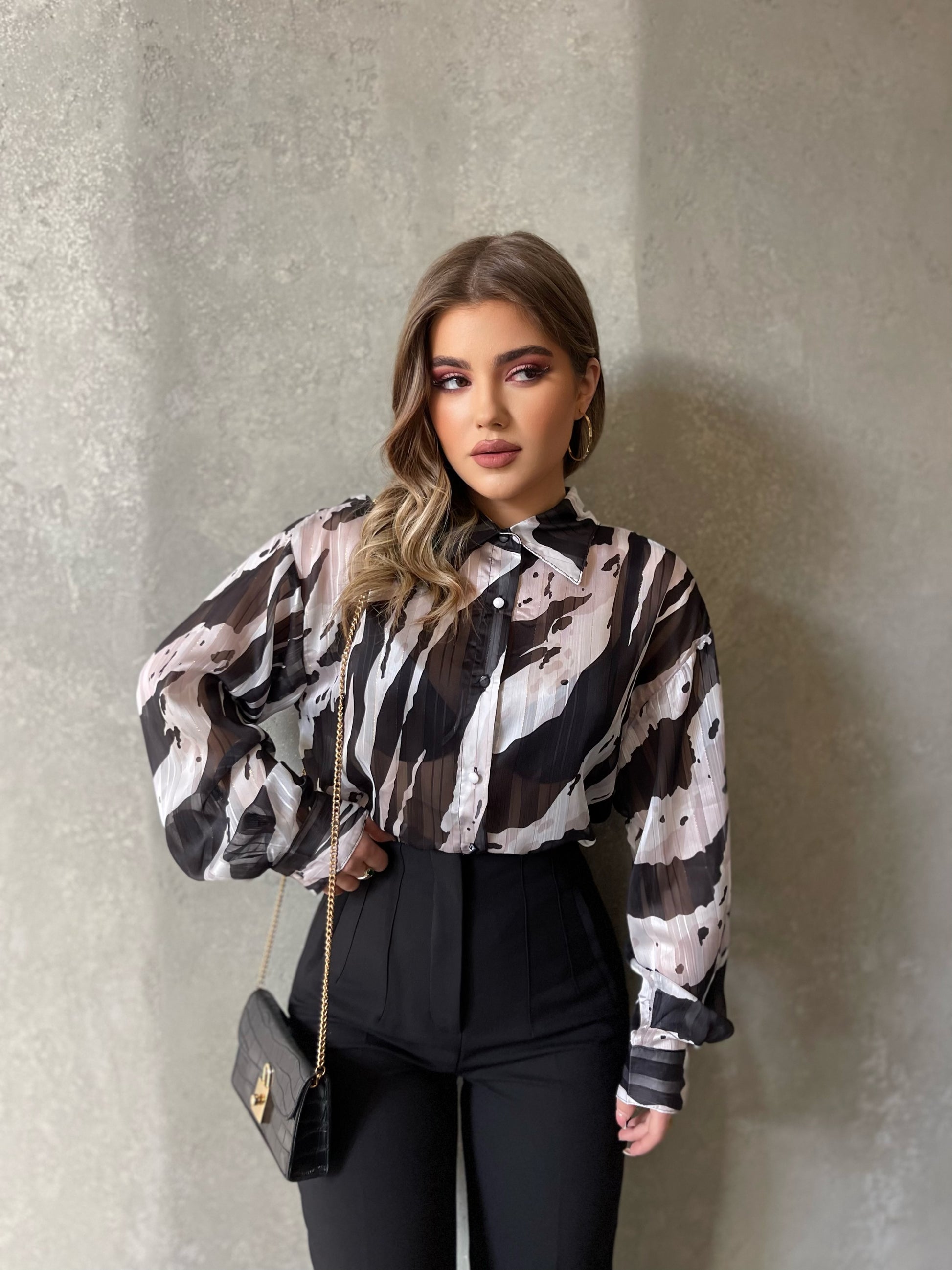 Kemush me dizenjo me viza me ngjyra. Kemish me jake me kapak me menge te gjata. Mberthimi behet me kopsa ne pjesen e perparme. E kombinueshme dhe figurante.