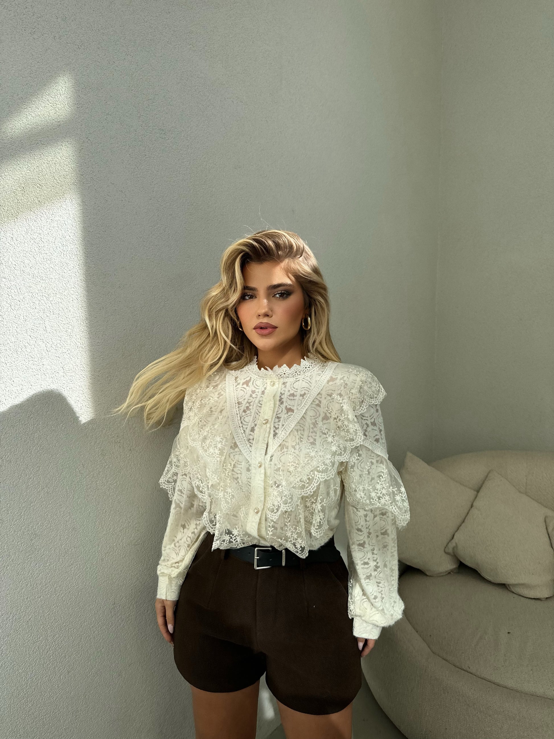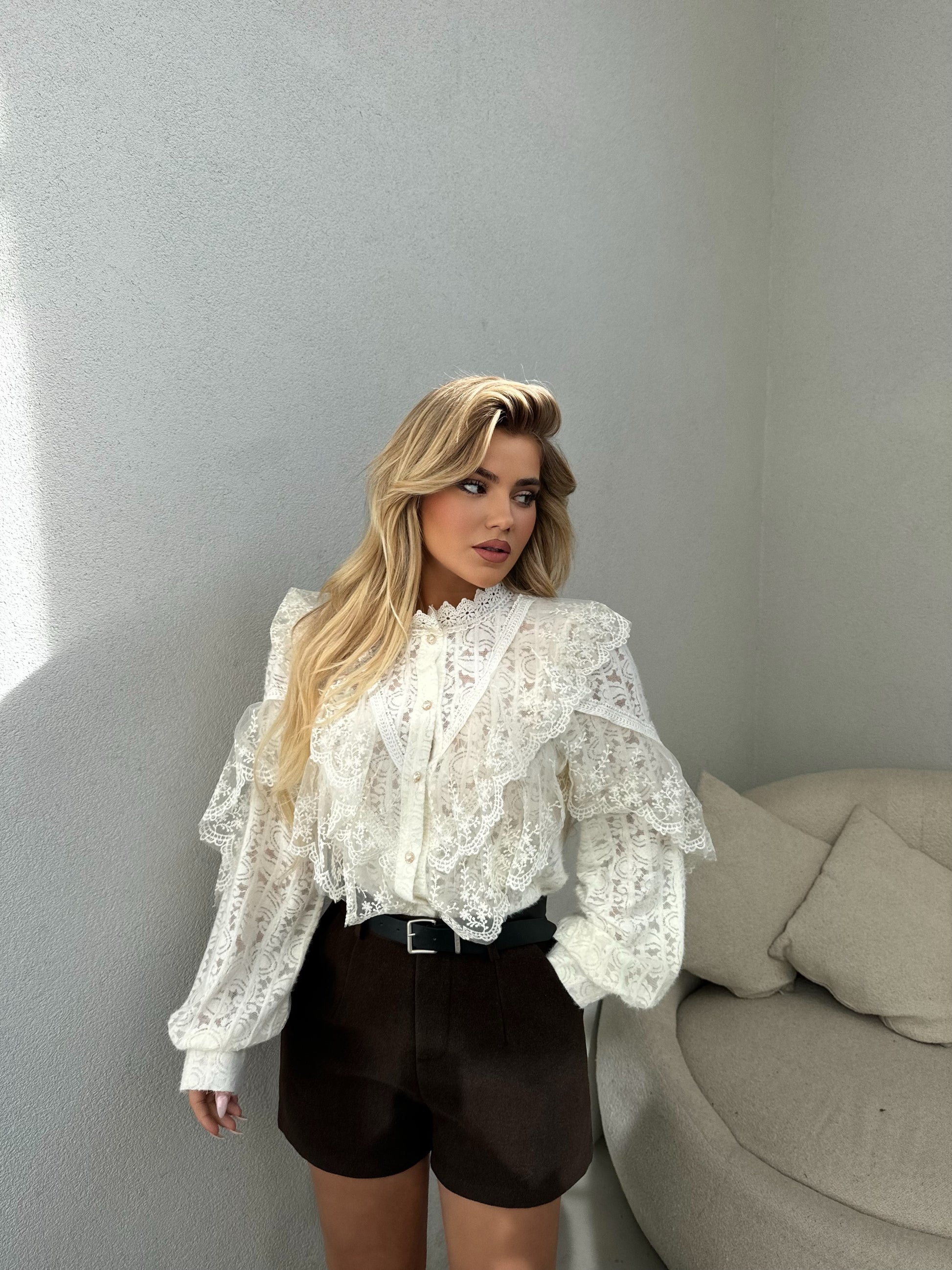 Kemishe ne ngjyren bezhe, ka gjatesi normale vjen me nje dizajn teper te vecant. Ideale per te theksuar butesin dhe hijeshine.