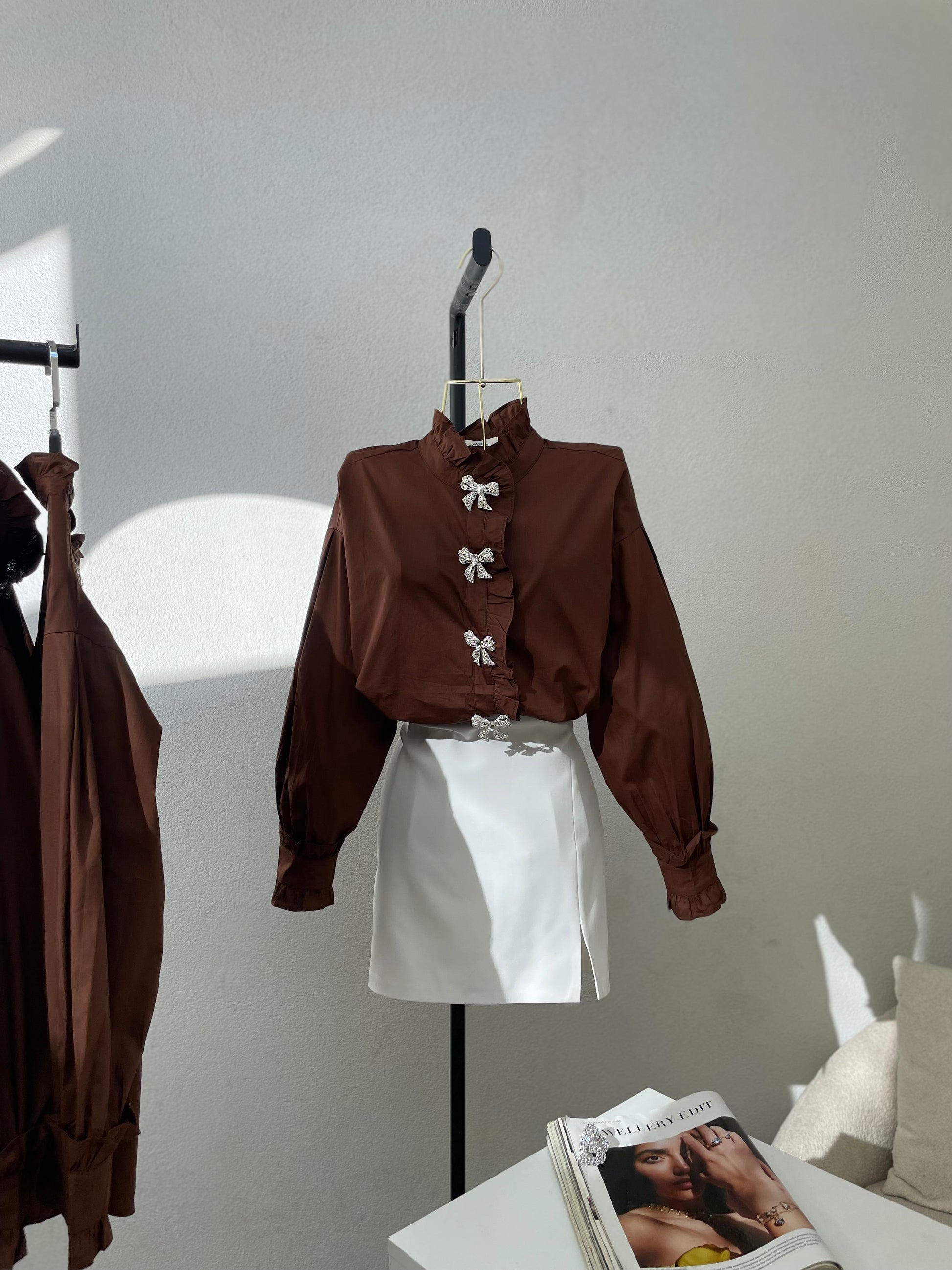 Kemishe me fjongo ne ngjyren kafe. Vjen ne material te plote, shume komode ne trup. Teper e vecante dhe e kombinueshme.