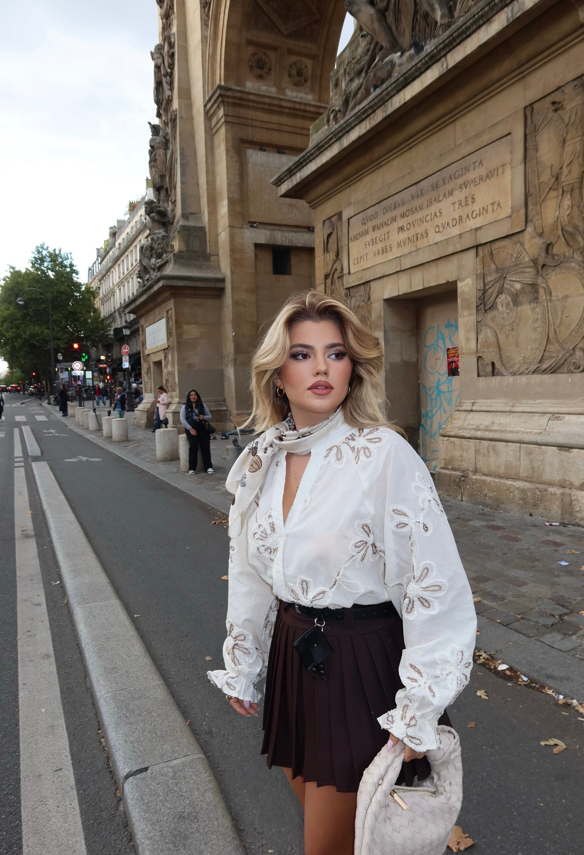 Kemishe ne ngjyren bezhe me detaje lulesh. Ka detaje te vecanta tek menget. Vjen ne material te plote, shume komode ne trup.
