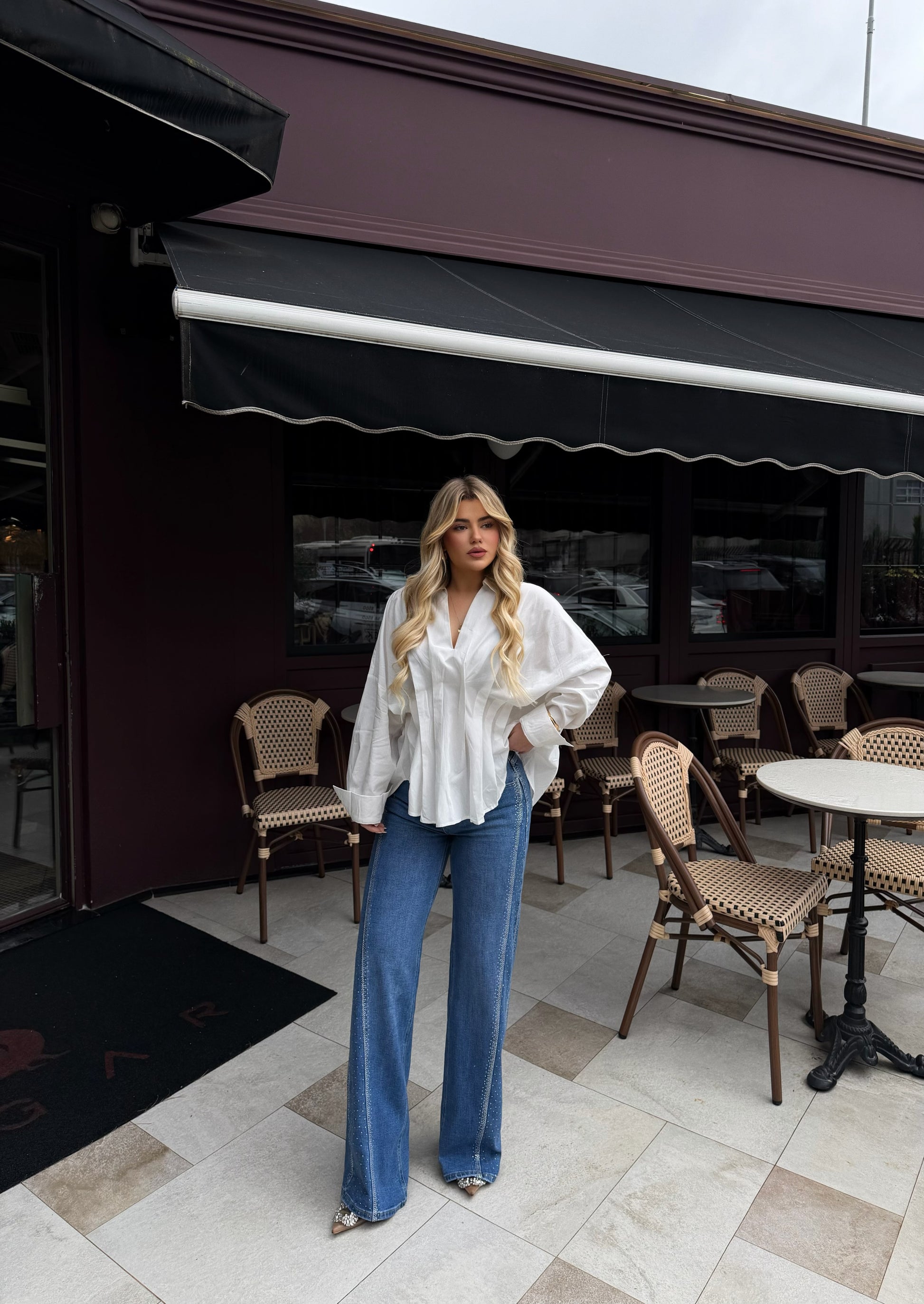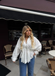 Kemishe ne ngjyren e bardhe. Kemisha vjen me nje dizajn me pala te cilat i shtojne me shume stil dhe elegance. Materiali komode dhe i bute.
