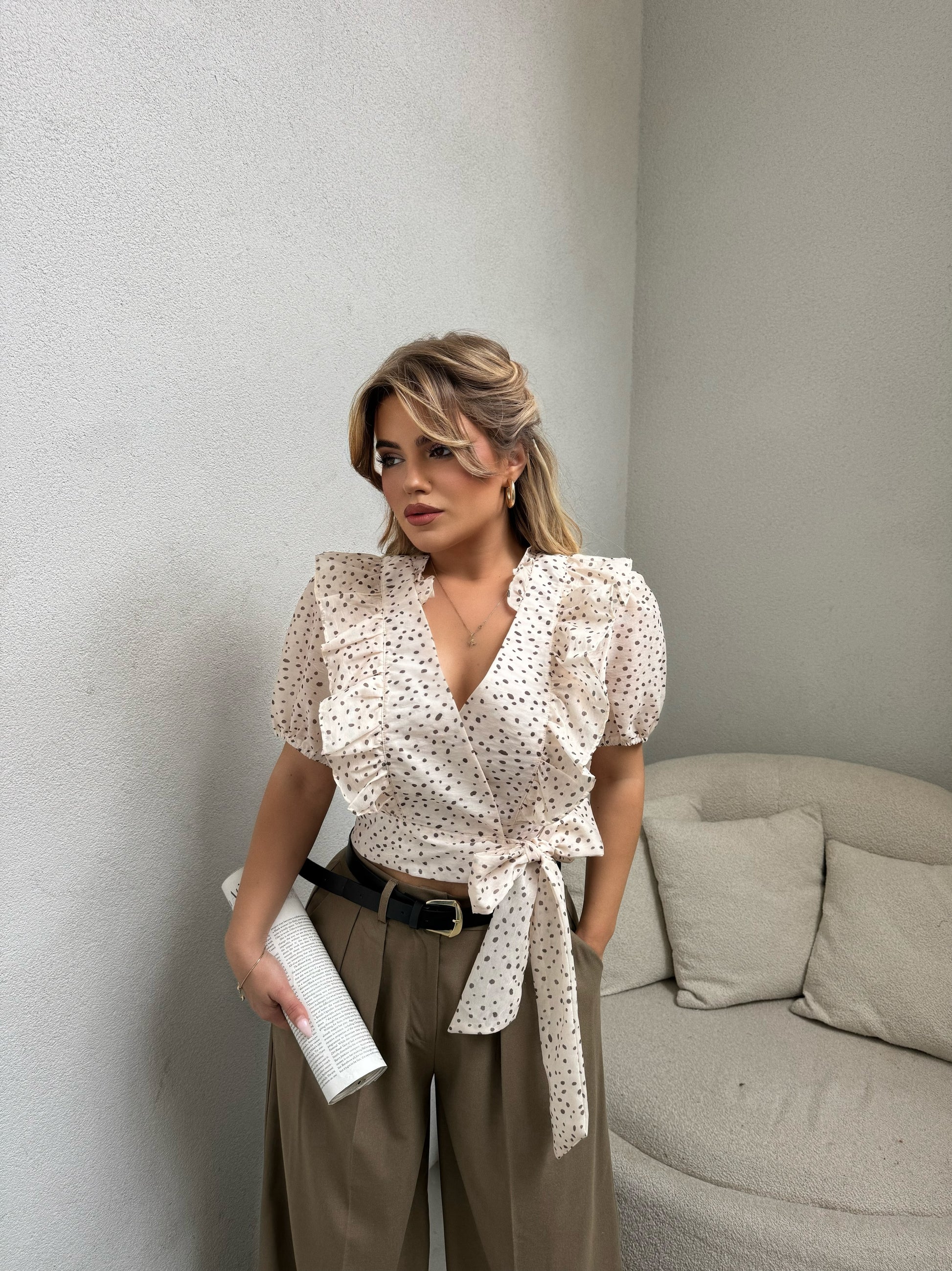 Kemishe e shkurter me detaje me pika. Vjen me lidhje ne pjesen para dhe eshte teper stil.