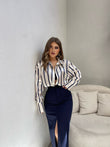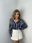 Kemishe saten me viza . Ka jake ne forme V-je dhe mberthimi behet me ane te kopsave ne pjesen perpara. Kombinohet lehtesisht me cdo veshje dhe ka material te plote dhe cilesi fantastike.
